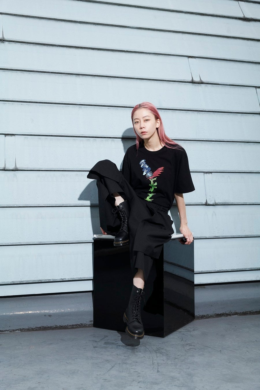 Ground Yのストアフロント・ウォールにSUMIREが、ペインティングワークを描くライブアートパフォーマンスを実施。俳優・モデル・アーティスト──様々な顔を持ち、渋谷PARCO50周年に合わせた特別なプロジェクトとして、discord Yohji Yamamotoのバッグコレクションや、Ground Yとコラボレートしたコレクションを発表するSUMIRE。迷いなく描かれる澄んだ絵画がGround Yストアをジャックする。