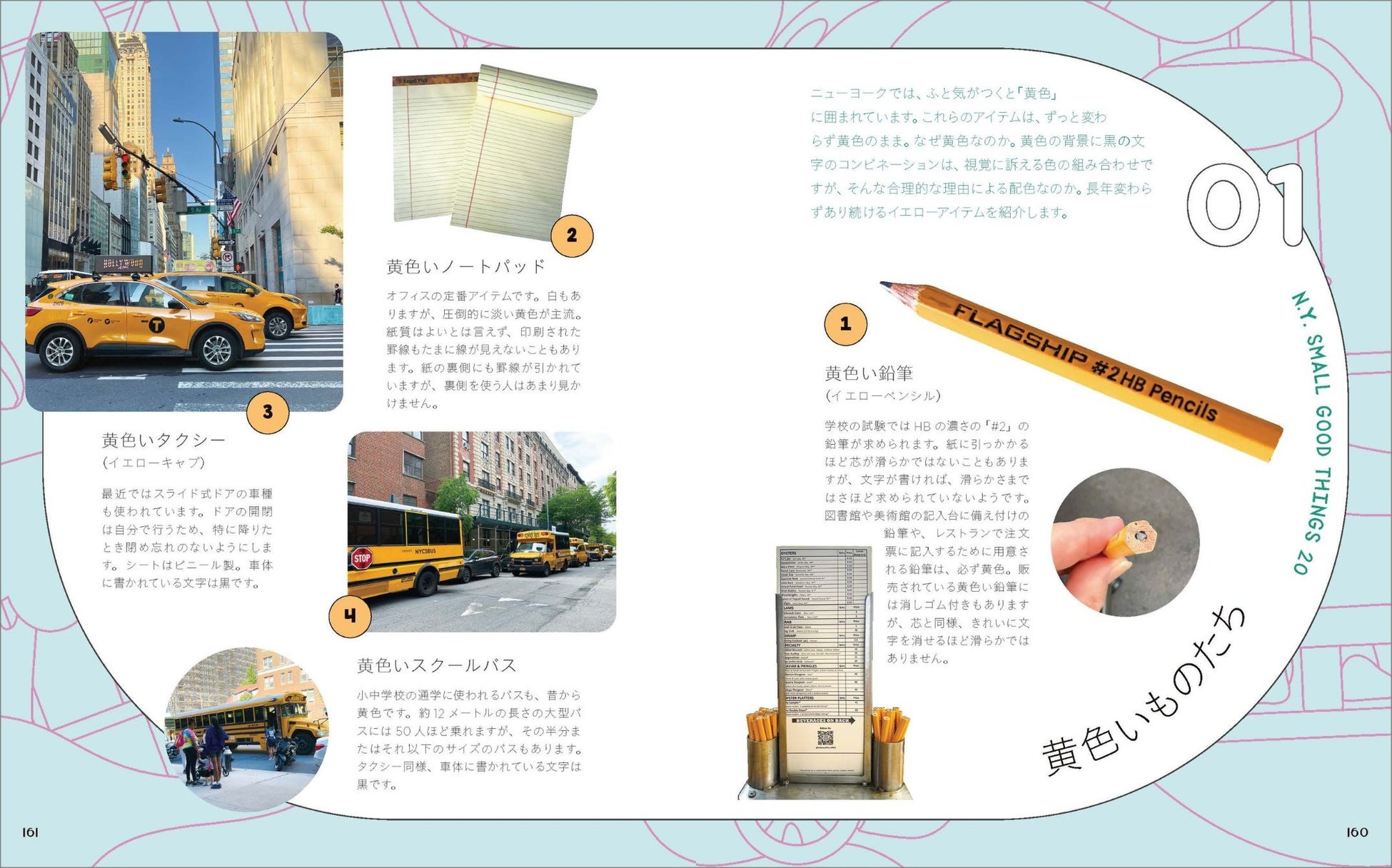 PART4では、観光ガイドでは紹介されない、NYを深めるために知っておきたい20のモノ・コトを掲載。タクシーやスクールバス、鉛筆など、なぜか多い「黄色いモノ」たちや、映画やドラマでよく見る「アパートの外階段」、NY市が管理する「暖房の温度」、「移民の食事を支えてきた老舗」や、オープンな「パブリック・スペース」、「街中のアート鑑賞」や「歴史に浸れるホテル」、「スーツ+スニーカー」のコーデの発祥話から、最近人気の「サイレントディスコ」まで。30年暮らす著者ならではの視点が光る、ユニークなモノ・コトをたくさん紹介します。