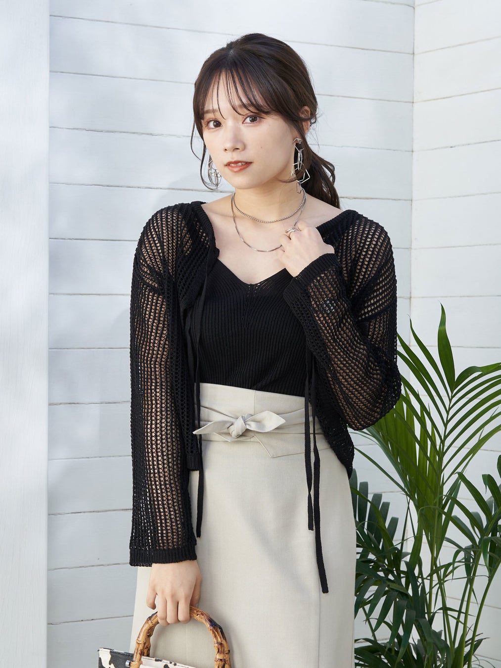 今回の一押しアイテムは、ショートブラウスとキャミワンピースがセットになった1着。ショートブラウスは、ウエストシャーリングが身体にフィットし、スタイルアップして見えるデザインに。マーメイドシルエットのキャミワンピースは、手持ちのTシャツやブラウスとも組み合わせたり、着回し力抜群のアイテムです。そのほか、トレンド感満載の肌見せアイテムや夏らしいメッシュデザインなど、トレンドを落とし込んだ全13型のアイテムを展開いたします。