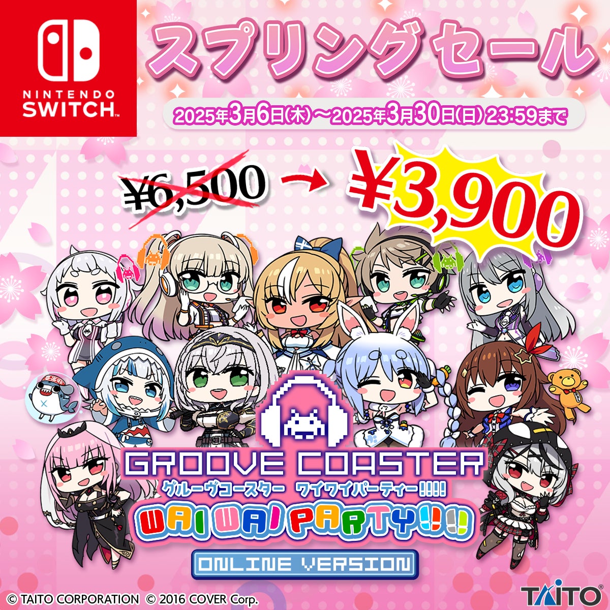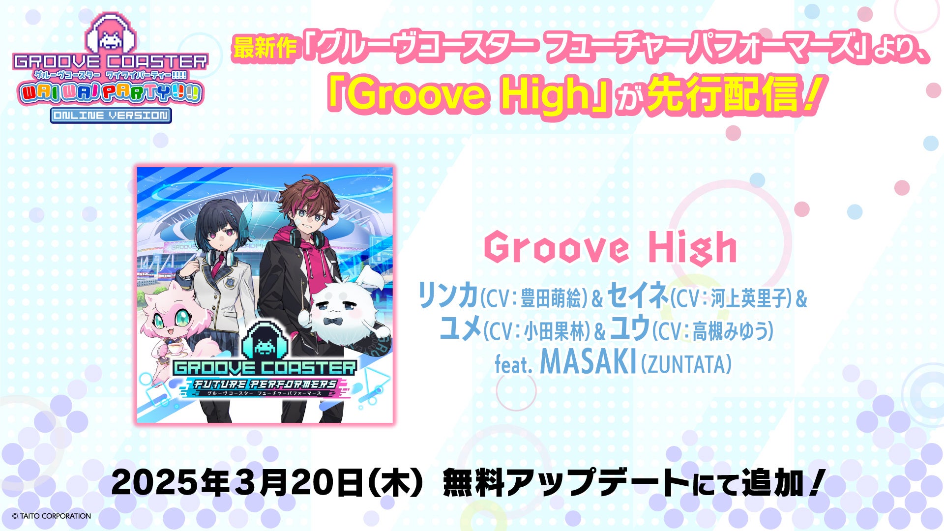 株式会社タイトー(本社:東京都新宿区)は、好評発売中のNintendo Switch™ダウンロード専用ソフト『グルーヴコースター ワイワイパーティー!!!!』にて、新たな楽曲追加に伴う無償のアップデートを3月20日(木)に実施します。追加楽曲は、2025年夏に発売予定のシリーズ最新作『グルーヴコースター フューチャーパフォーマーズ』に収録予定の応援ソングを先行配信いたします。