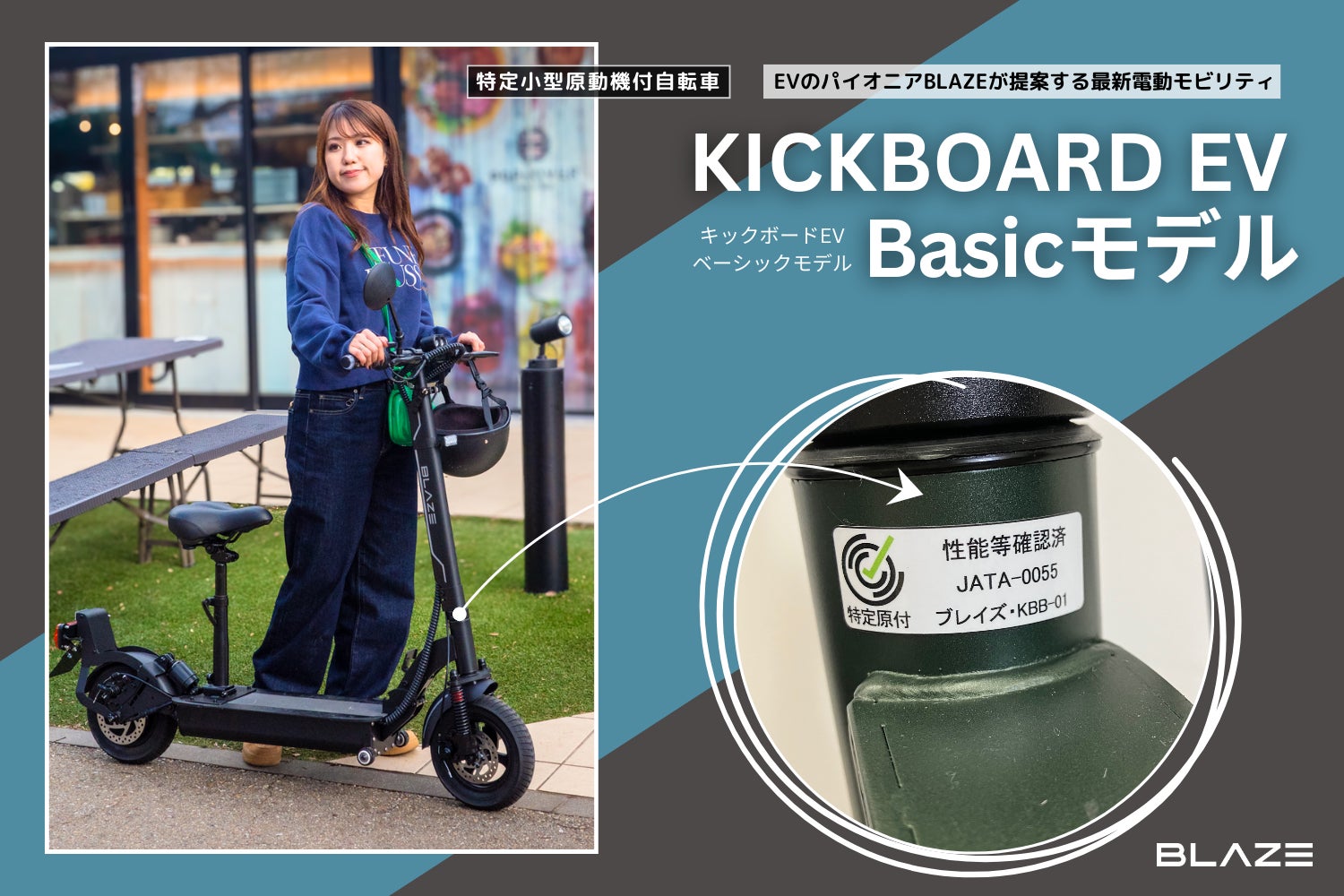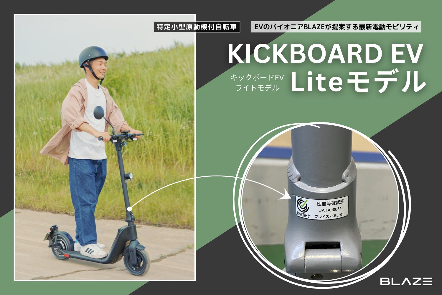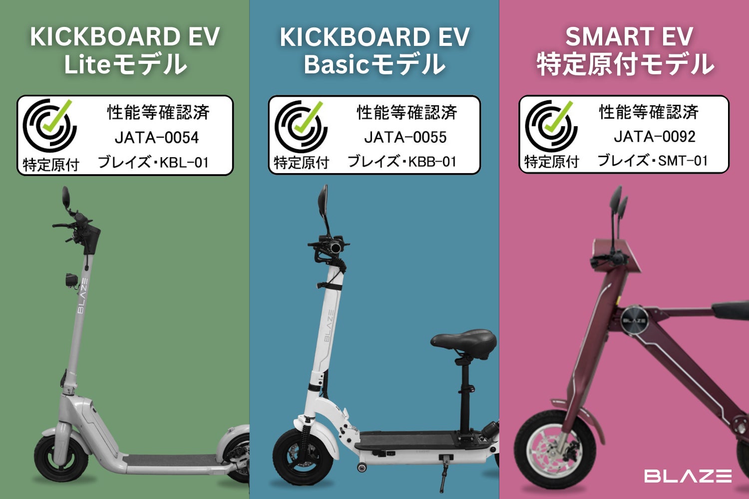 株式会社ブレイズ(愛知県名古屋市、代表取締役:市川秀幸、以下ブレイズ)は、ブレイズの提唱する新ブランドコンセプト「LIFE EV」(*下記参照)の下に展開する車両区分:特定小型原動機付自転車(以下、特定小型原付)の二輪電動モビリティ「KICKBOARD EV Liteモデル(以下、キックボードEV ライトモデル)」、「KICKBOARD EV Basicモデル(以下、キックボードEV ベーシックモデル)」、「SMART EV 特定原付モデル(以下、スマートEV 特定原付モデル)」に関して、性能等確認制度による認定を取得しました。