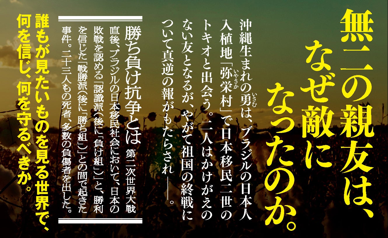 戦後のブラジルで日本移民を二分した「勝ち負け抗争」の真実。分断が進む現代に大きな問いを投げかけるエンターテイメント巨篇。