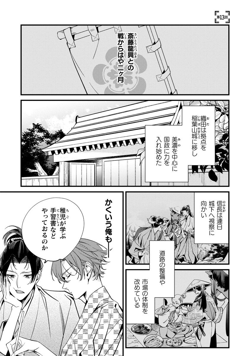 強引に織田信長の小姓にさせられるが、さまざまな出来事で彼を知っていき心を寄せるように。
