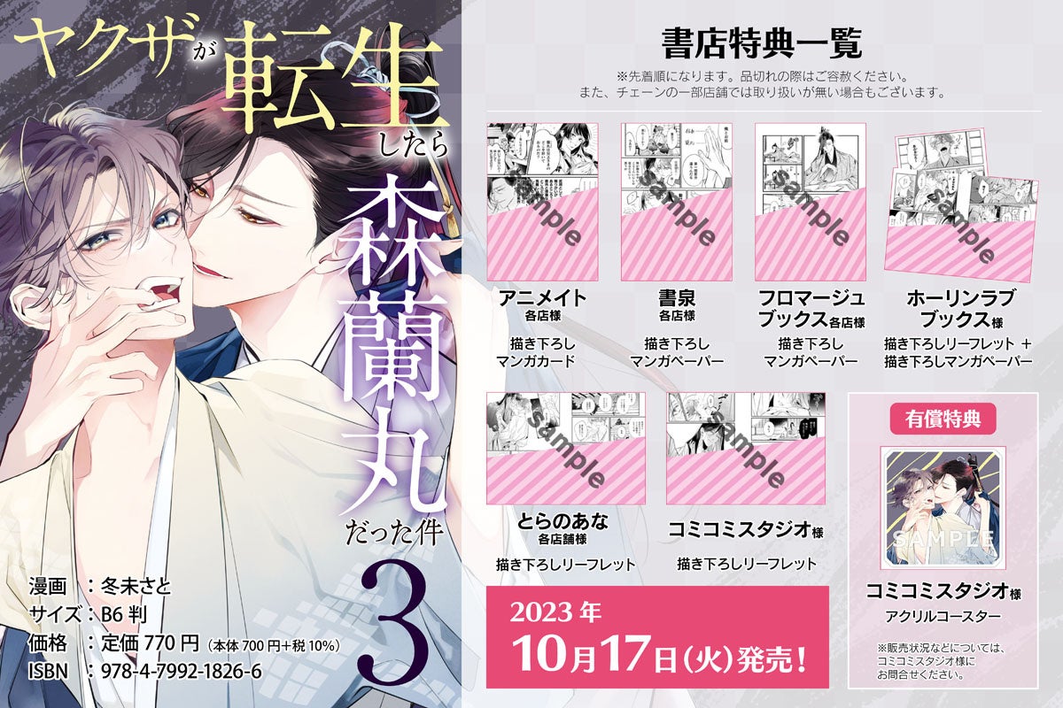 話題の戦国転生ラブ待望の新刊!『ヤクザが転生したら森蘭丸だった件 3』発売!