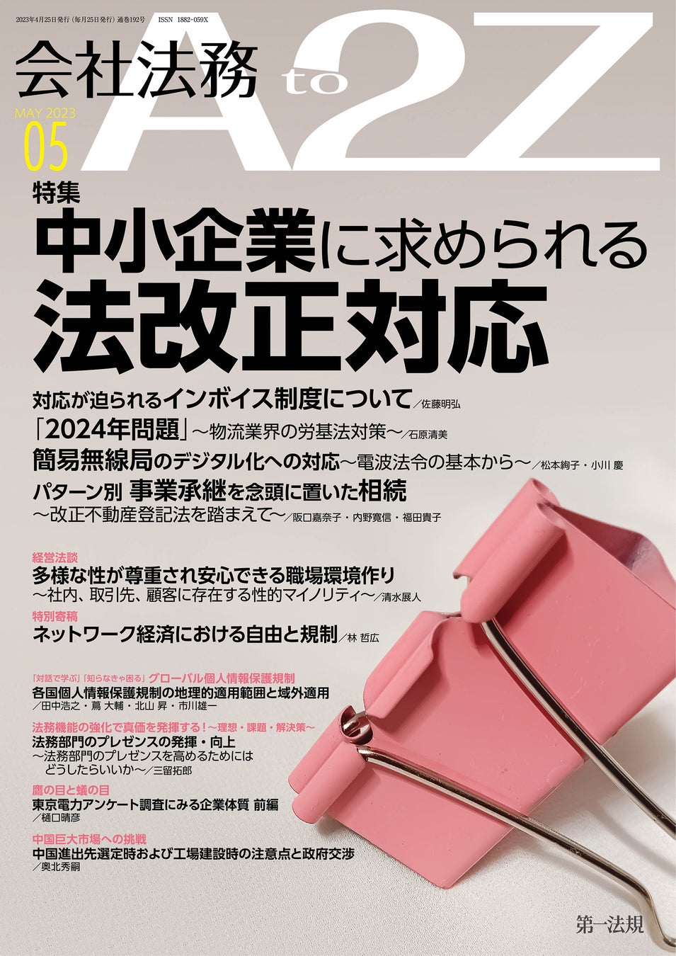 【会社法務A2Z】最新の企業トレンドや法改正情報の解説を毎月お届け!2023年5月号特集は”中小企業に求められる法改正対応”!