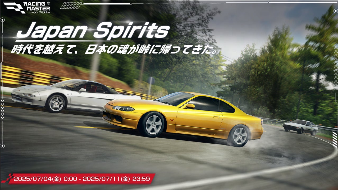 同期間中には、日本車ファン必見の復刻ガチャ「JAPAN SPIRITS」も、2025年7月4日(金)から7月11日(金)までの期間限定で開催されます。今回のガチャでは、トヨタ Sprinter Trueno GT-Apex (AE86) '85、日産 SKYLINE GT-R (R32) '89、日産 SKYLINE GT-R (R34) '99 や日産 Silvia Spec-R (S15) '99など、かつて峠道を舞台に数々の伝説を生んだモデルたちが一挙に再登場。