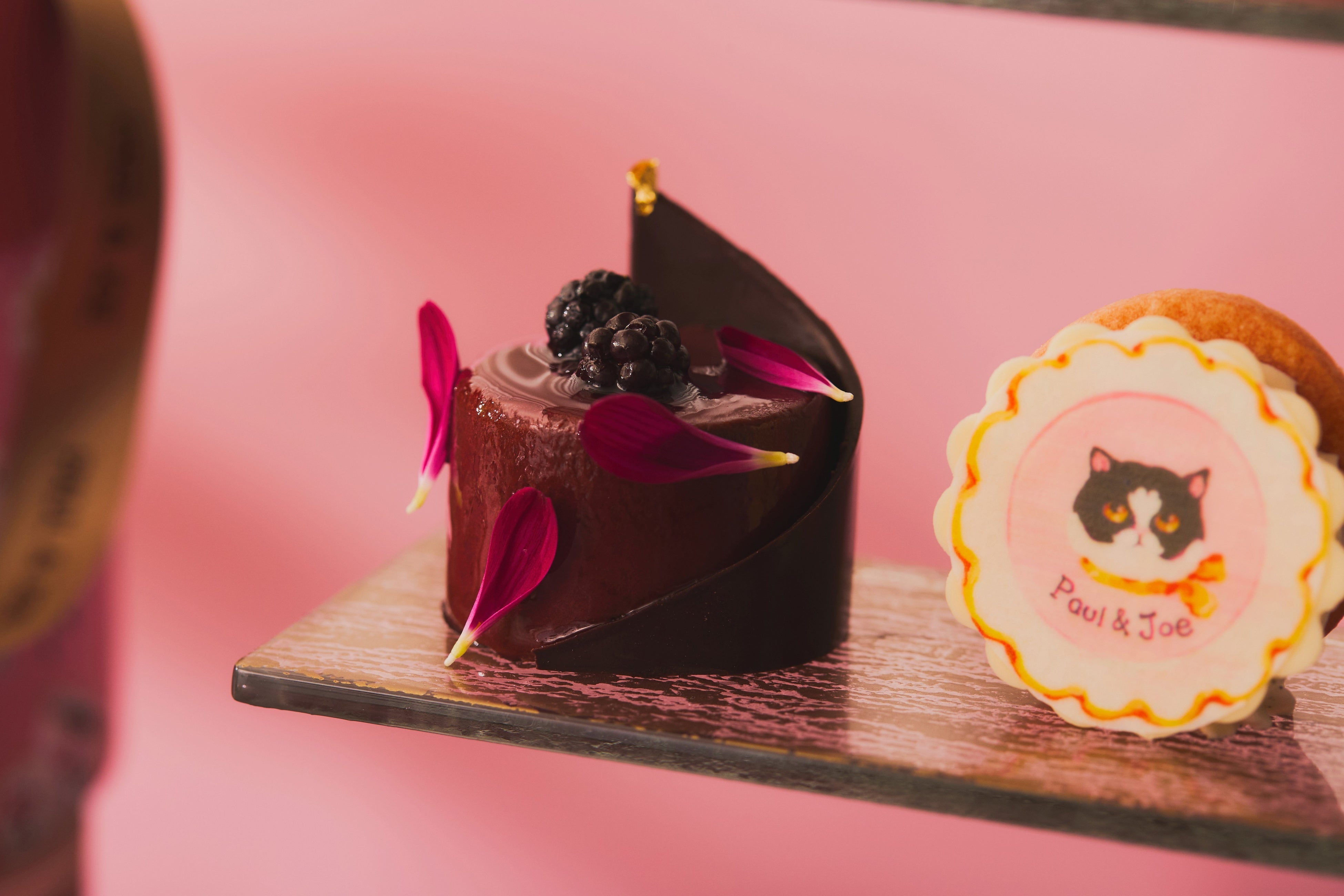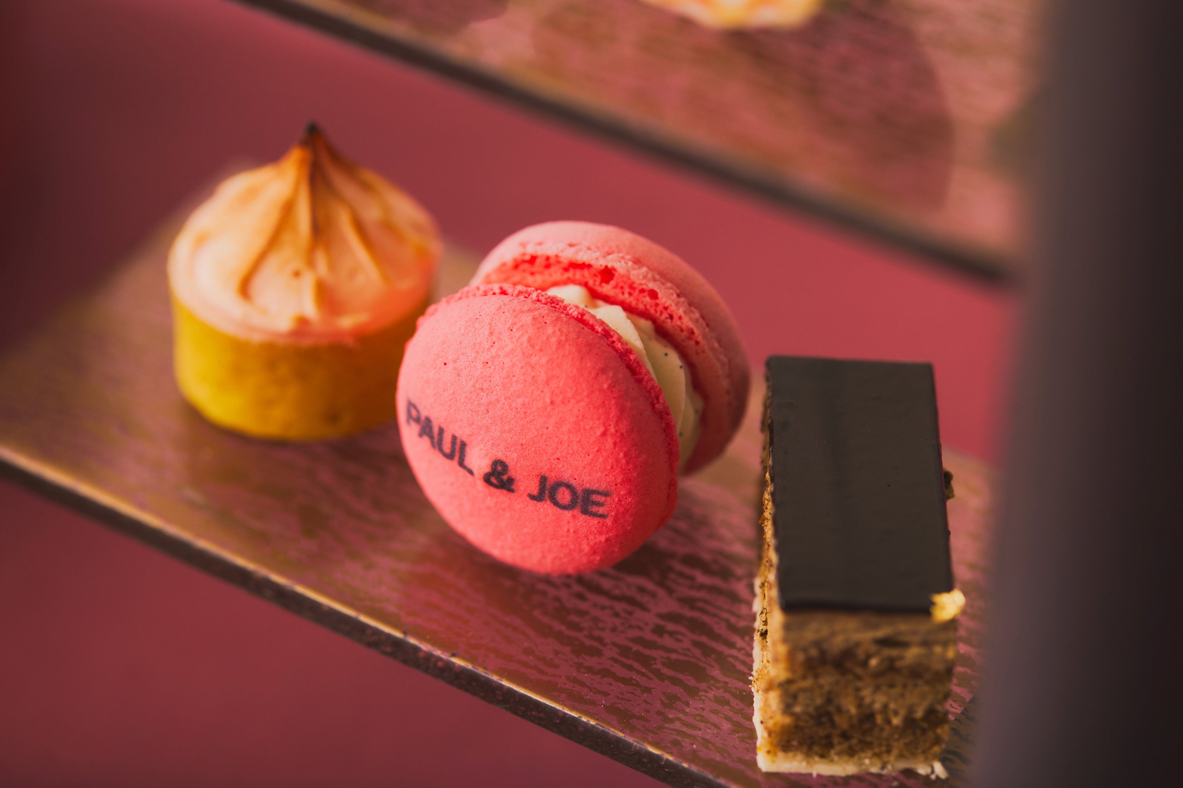 今回のアフタヌーンティーでは、“JOIE DE VIVRE(生きていることの喜び)“に溢れたコレクションを展開するPAUL & JOEのエッセンスと、幸福感と温かみのあるレトロモダンなブランドの世界観にインスパイアされたスイーツをラインアップ。デザイナー ソフィーの愛猫のイラストをあしらったムースや、猫たちから着想したサブレサンドなど、世界中で愛されるPAUL & JOEのモチーフたちがスイーツとなり登場します。