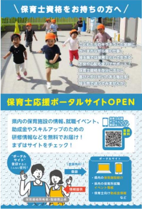 その取組を必要な方に確実に届け活用いただくとともに、保育の仕事の魅力を広く発信するため、保育士応援ポータルサイト「埼玉保育ナビ」をプレオープンしました。