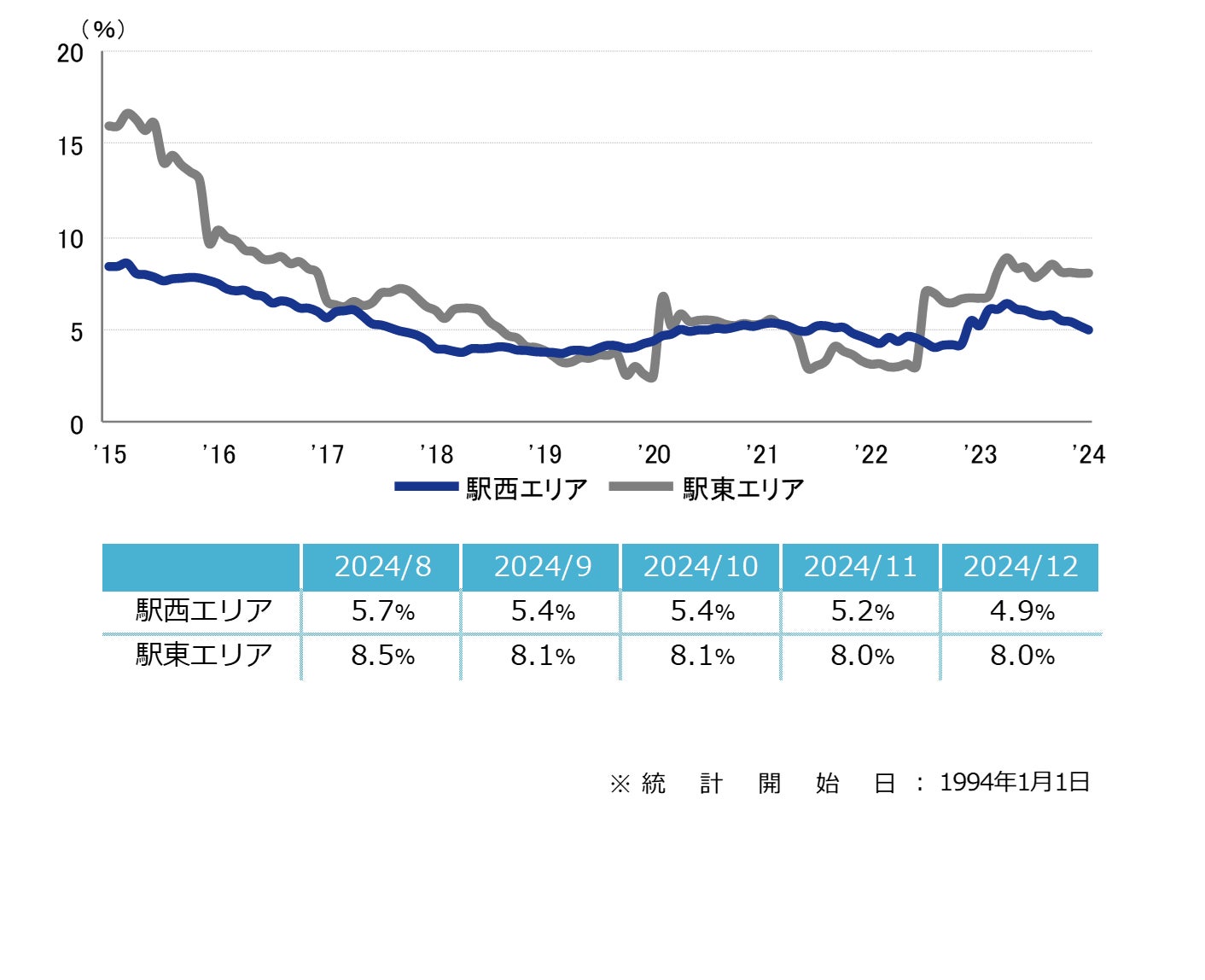 空室率 4ヵ月連続の低下 「大規模」は2023年12月以来の5%台