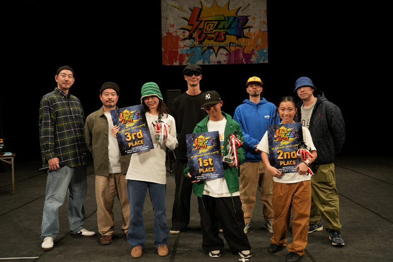 決勝大会では、11月9日(日曜日)に開催した予選大会を勝ち抜いた16名による1対1のトーナメント形式のダンスバトルが行われ、中学2年生のSHUNさんが見事初優勝を果たし、2位はTSUMUさん(小学6年生)、3位はRinoさん(中学1年生)という結果となりました。