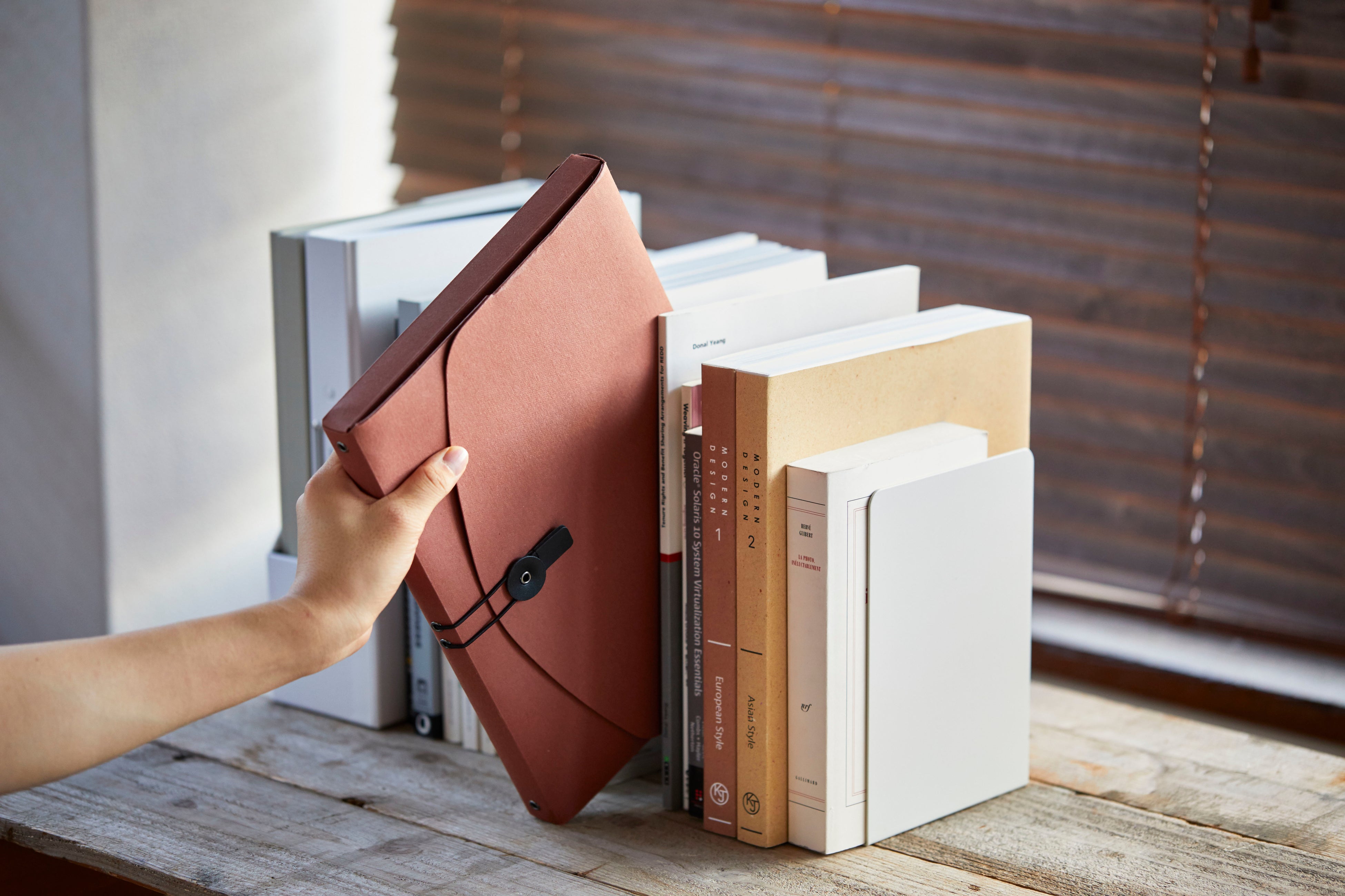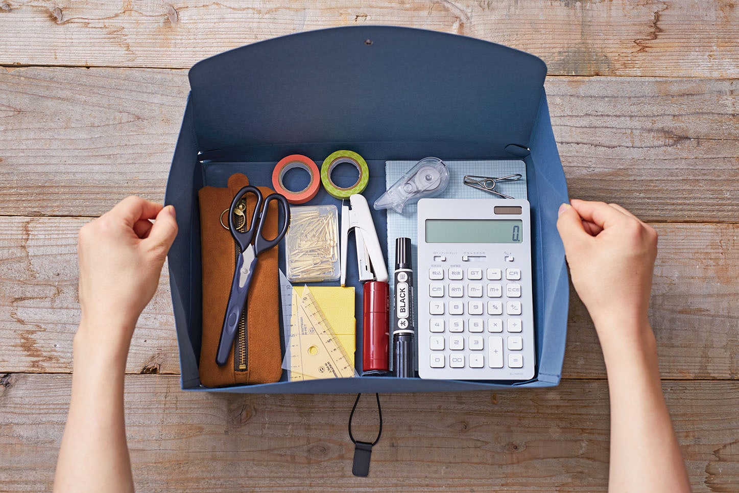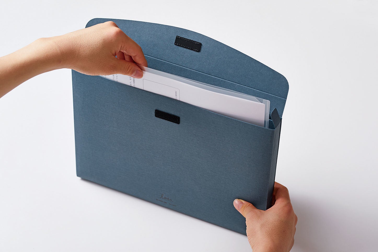 「ロッツ」フルオープンケースは、小物と書類を一つにまとめて持ち運べる薄型収納ケースです。開口部が大きく開くため、中身が取り出しやすい設計です。さらに、薄型なので小物同士が重なりにくく、収納物をひと目で確認できます。また、ケースを閉じると約3㎝の厚みになるので、かばんや書棚にもすっきり収まります。裏面には書類を出し入れできるポケットがあり、ケースを開くことなくサッと書類が出し入れできます。ケースの内側には仕切りがついているので、小物と書類を分けて収納可能です。素材は雑貨感のある風合いが人気のクラフトペーパーを採用。約0.8mmの厚手の生地で、軽量ながら丈夫で持ち運びにも最適です。