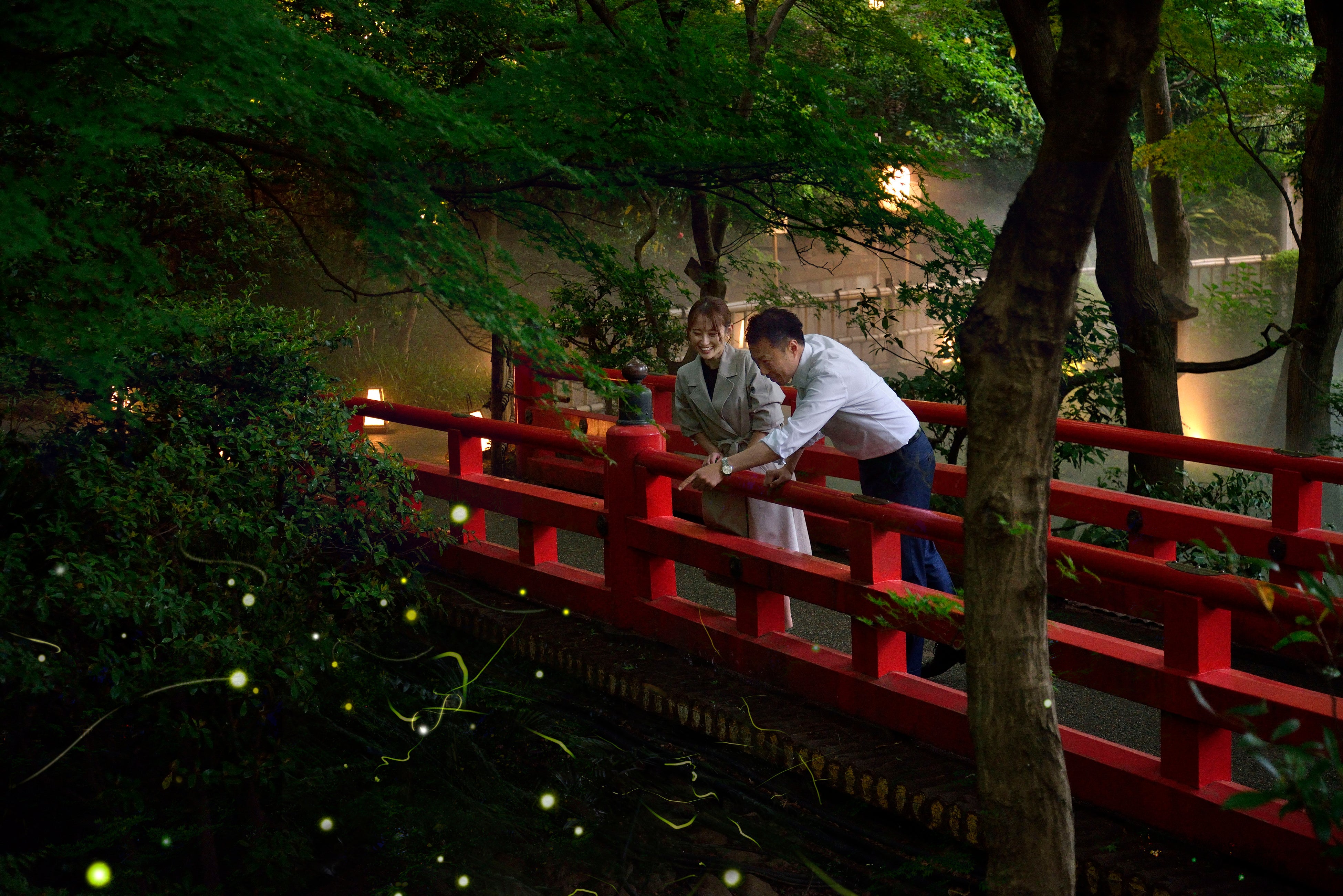 庭園の夜を彩る「ほたるの夕べ」は、当ホテルの初夏の風物詩です。藤田観光の創業者である小川栄一の「戦後の荒廃した東京だが、子どもたちに蛍を見せたい」「集団就職で上京した若者に、蛍舞う原風景に故郷を感じて欲しい」との想いから、1954年に始まったもので、本年で70周年を迎えます。
