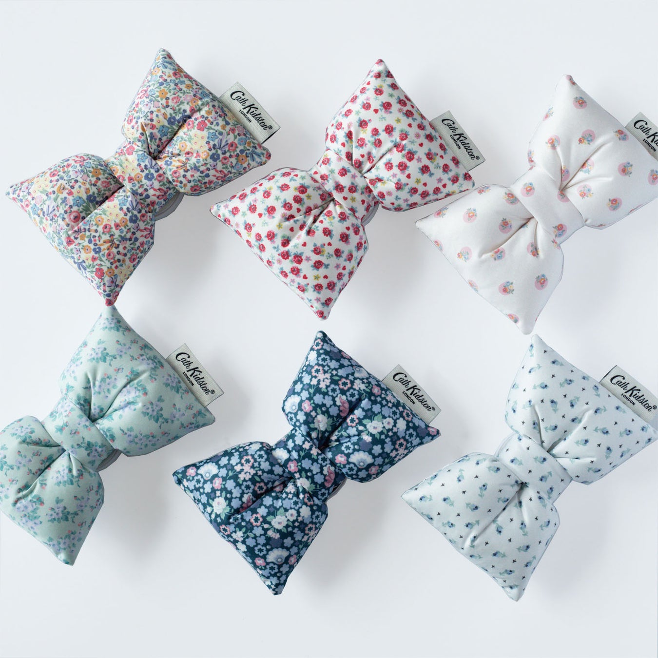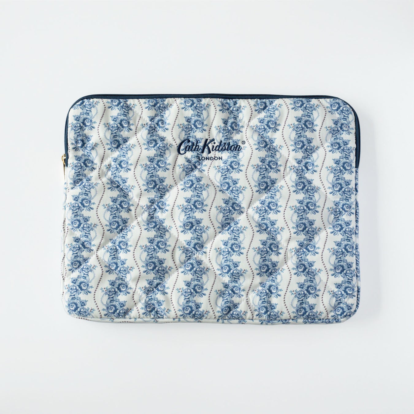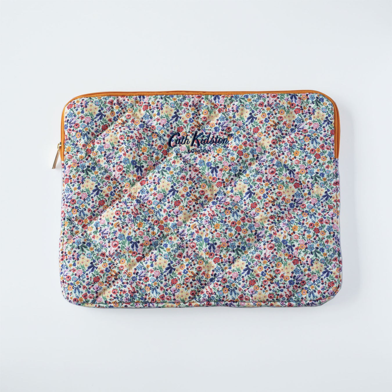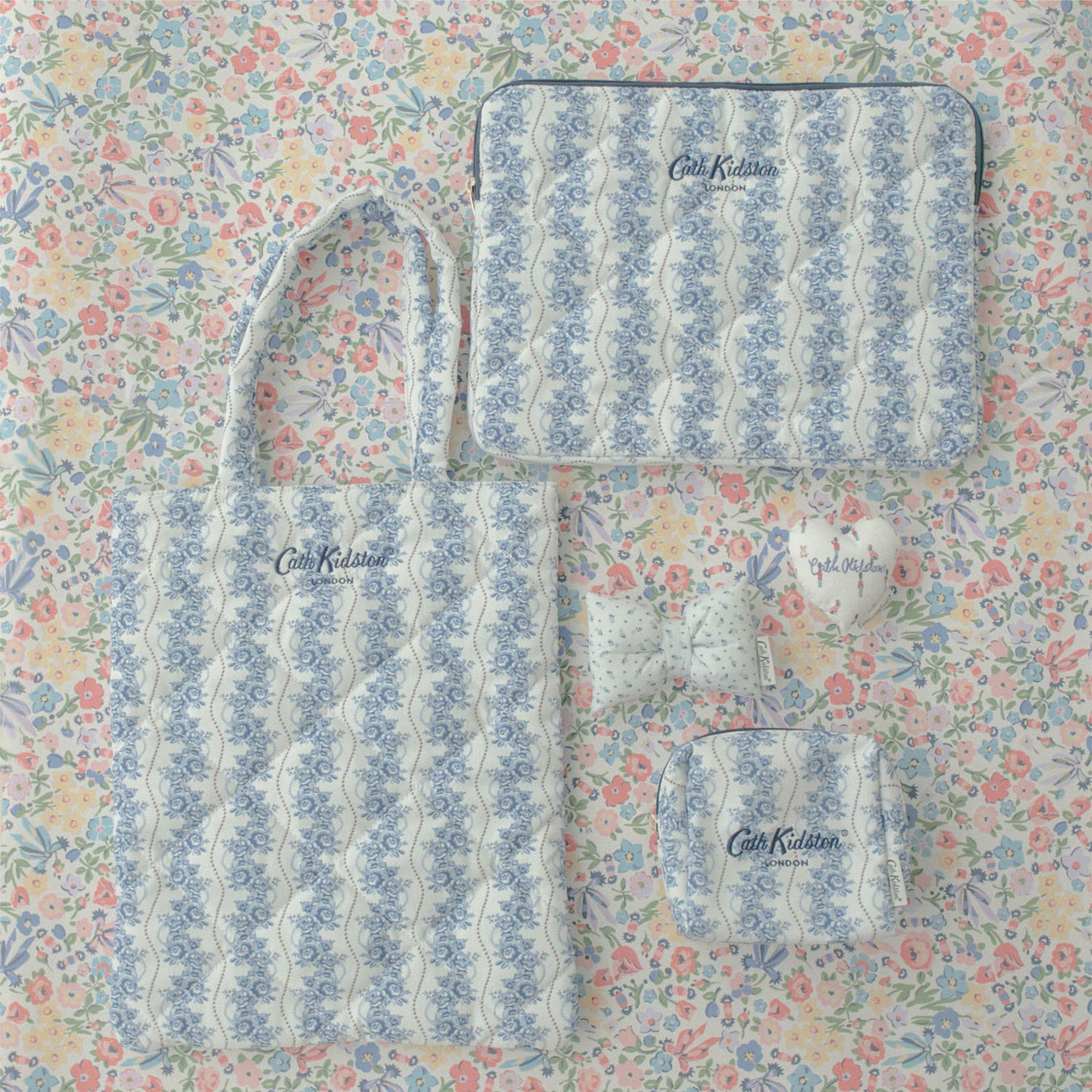 14インチのPCが収まるPCケースと、PCケースを兼ねたキルティングのトートバッグ、充電器やイヤホンなどモバイル周りの小物をまとめるガジェットポーチは、大人っぽいブルー系のRose Pearl Miniature柄と、沢山のお花とリボンがミックスされたHarmony Ditsy柄の2つの柄で展開、各アイテムを同じ柄で揃えて持ち運びたくなるラインナップです。
