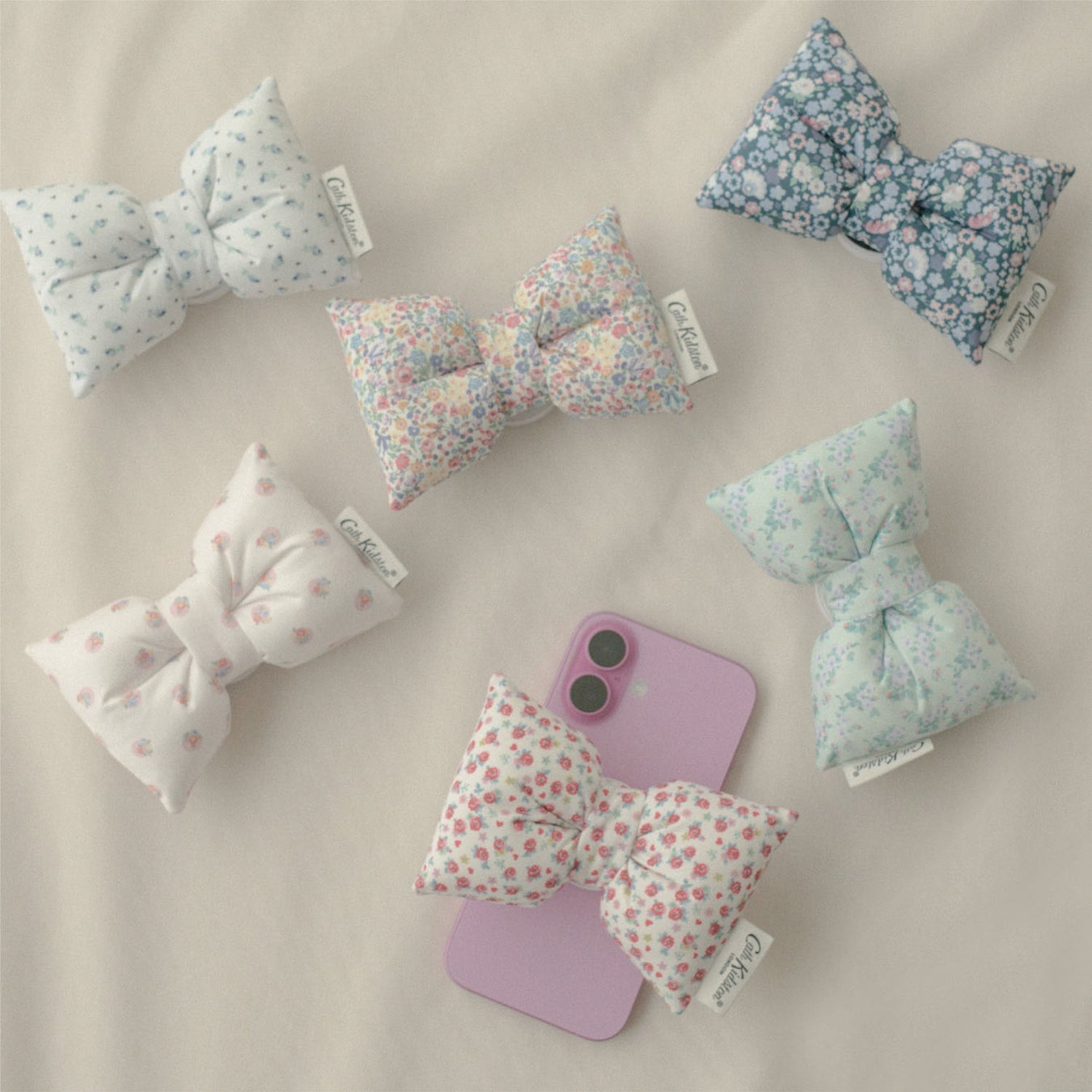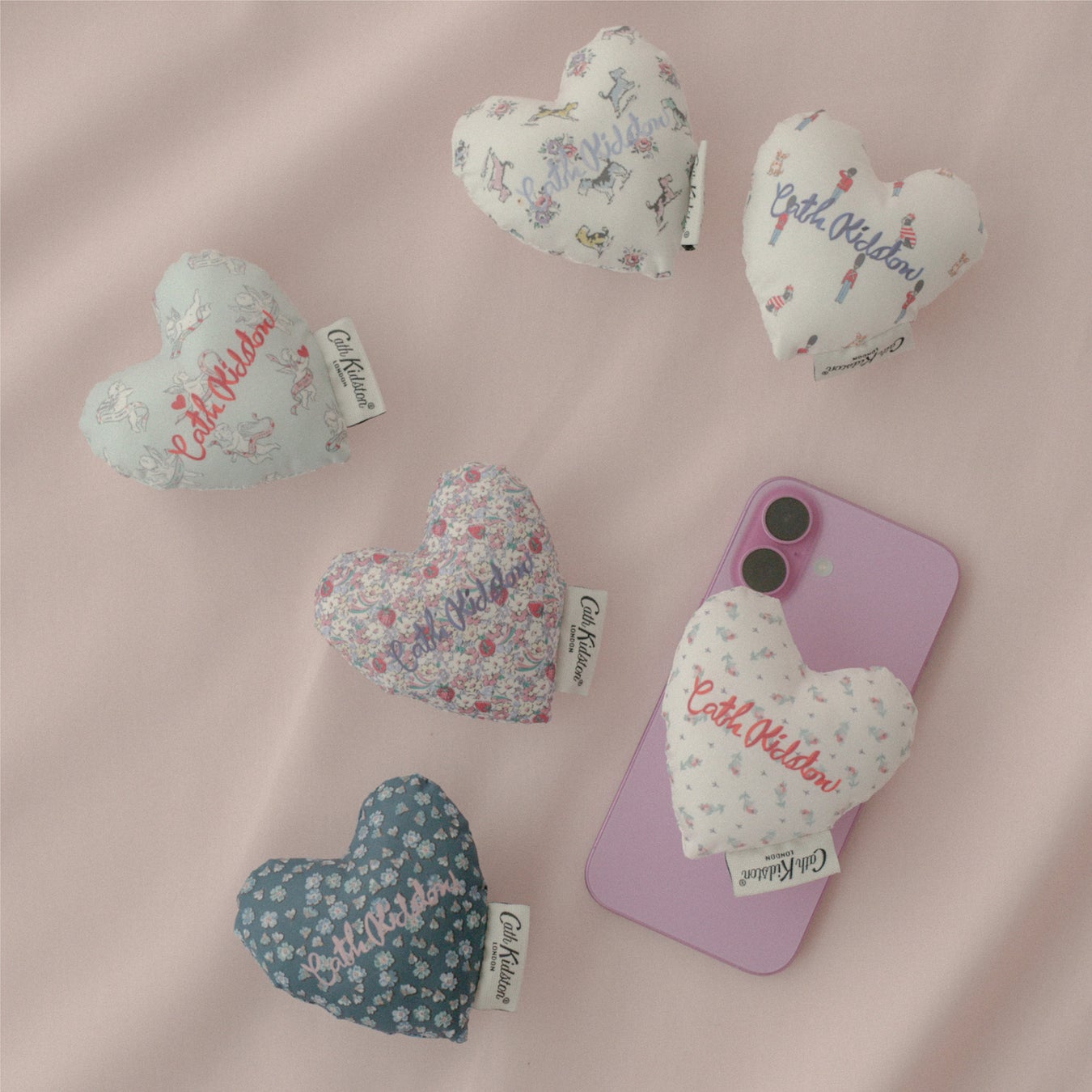 スマートフォングリップは、ボリュームたっぷりのパフパフなフォルムが目を引くハート型とリボン型の2種類。それぞれ6種類の柄を揃え、中でも人気のRose Miniature柄は発売済みのフリルのショルダーストラップとコーディネートすればかわいさ倍増。 英国らしいRoyal Guards柄や、ハートとバラのRose Heart Ditsy柄など、様々な雰囲気の全12種類の中からお気に入りを見つけてみてください。
