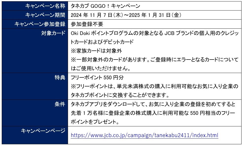2024年11月7日(木)から2025年1月31日(金)までJCB主催の「タネカブGOGO!キャンペーン」を実施中です。