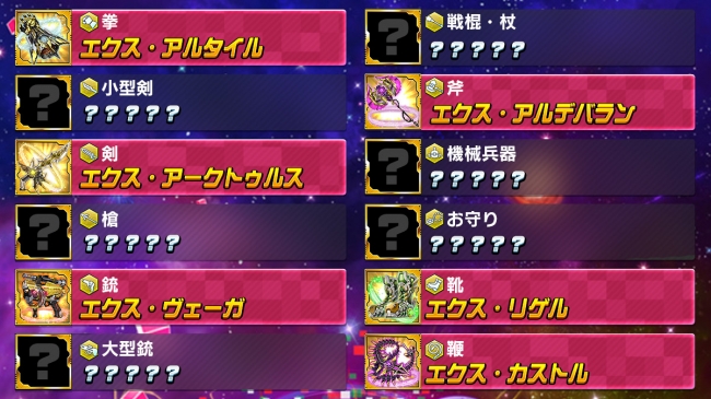 ▼今回の獲得対象となる『アークウェポン』一覧