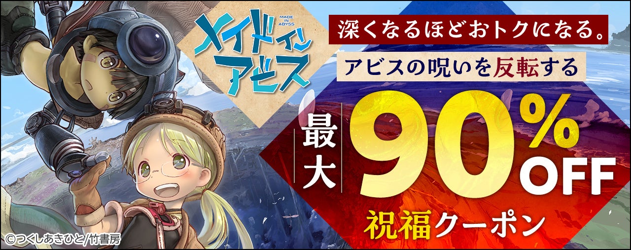 最新刊が90%OFF!?『メイドインアビス』新刊になるほど割引率が上がる「アビスの呪いを反転する祝福クーポン」配布