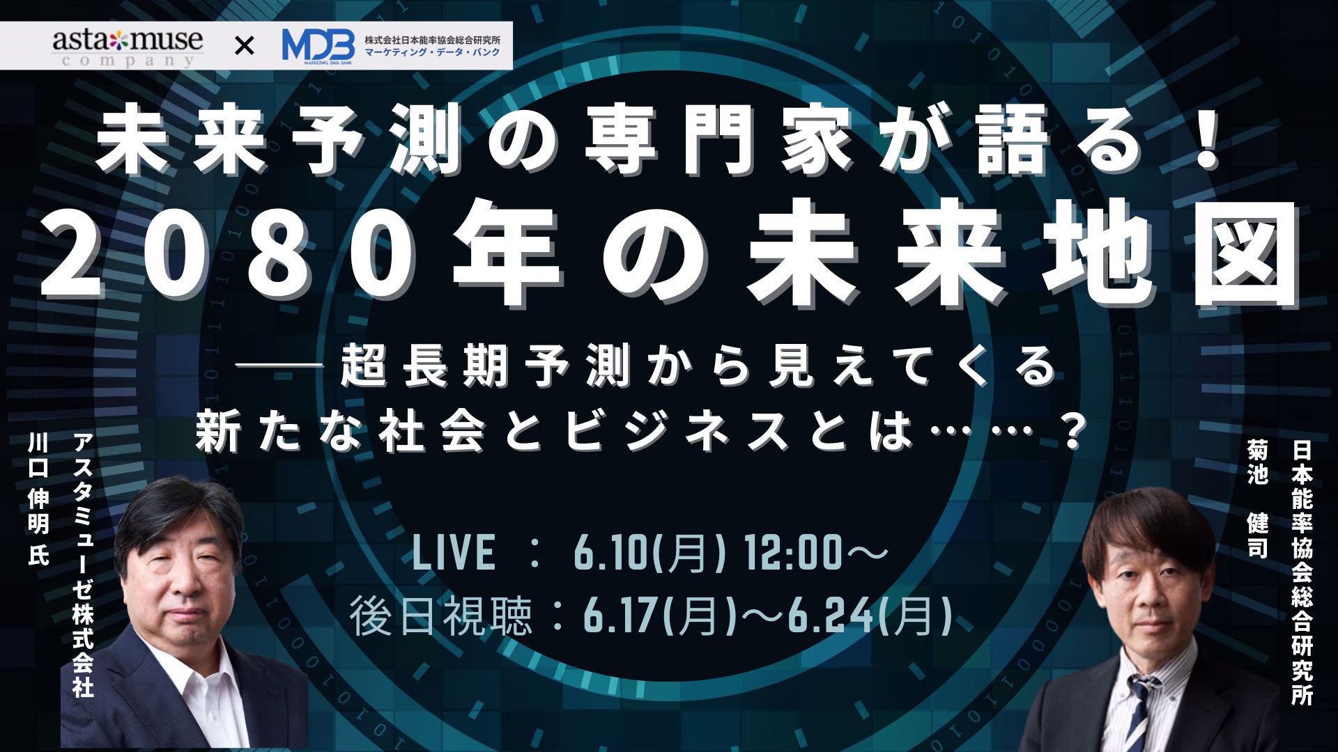 【MDB×アスタミューゼ共催セミナー】未来予測の専門家がスペシャル対談!2060、2080、そして2100年の社会・ビジネスとは……⁉