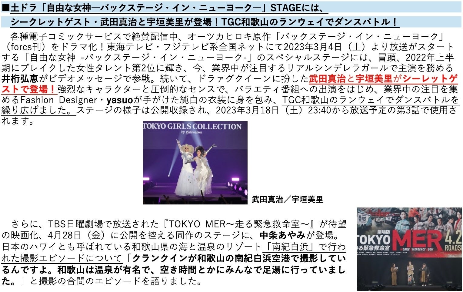 【TGC 和歌山 2023】TGCが待望の関⻄初上陸!関⻄出⾝の中条あやみが3開催連続でトップバッターを飾る。和歌⼭出⾝ 岡本玲や、シークレットゲスト 三浦翔平が登場!