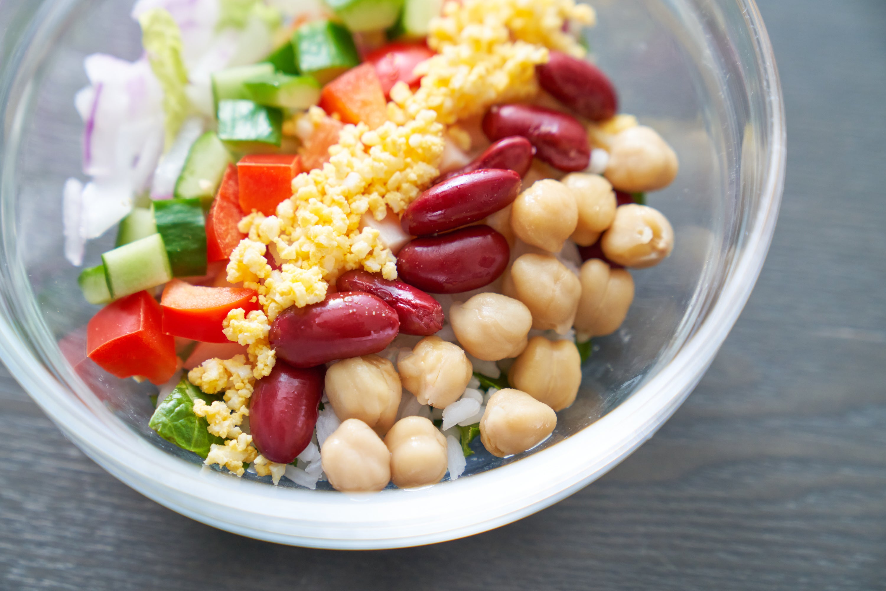カリフォルニアカルローズ米、ガルバンゾ、ダークレッドキドニー、シーフード、ナッツ、グレープフルーツ、チーズ、プルーンを使用しています。