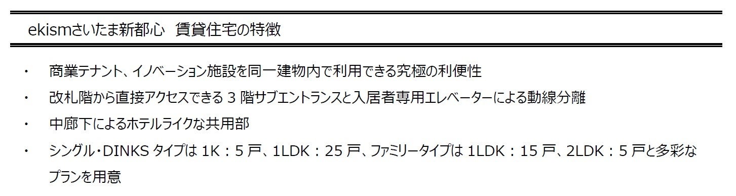 株式会社ジェイアール東日本都市開発(代表取締役社長:根本英紀)は、駅や駅ビルに隣接、または駅から徒歩1分以内の駅直結という利便性の高い立地において、くらしに便利な店舗や公共施設を併設した複合賃貸住宅「ekism(エキスム)」の第2弾となる「ekismさいたま新都心」を開業いたします。