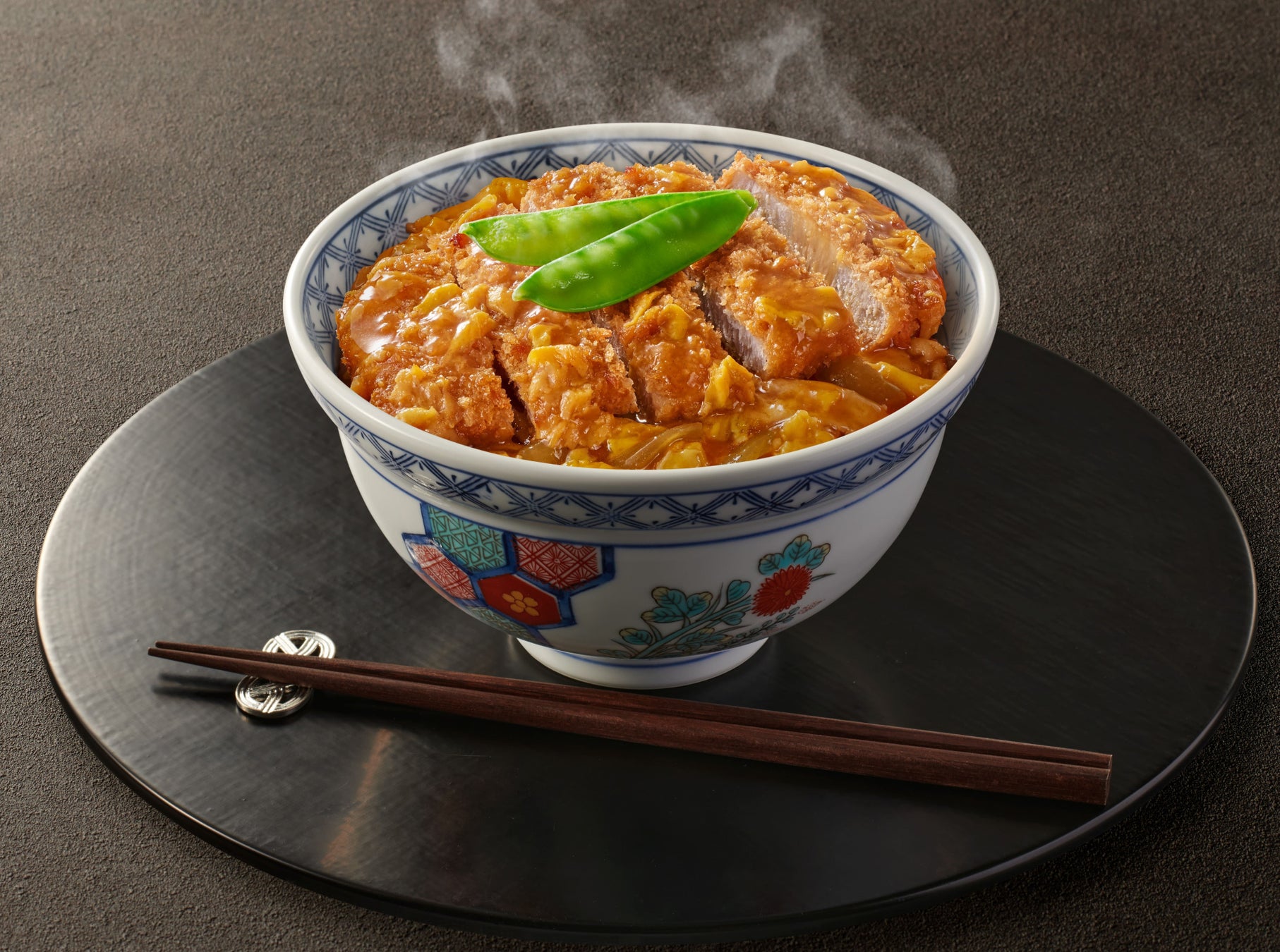 しっとりやわらかな熟成ロース肉を使用したとんかつと、5種の合わせ出汁 (鰹節、あご、煮干し、昆布、椎茸) をきかせた甘辛なつゆがよく合う、食べ応えのあるかつ丼です。