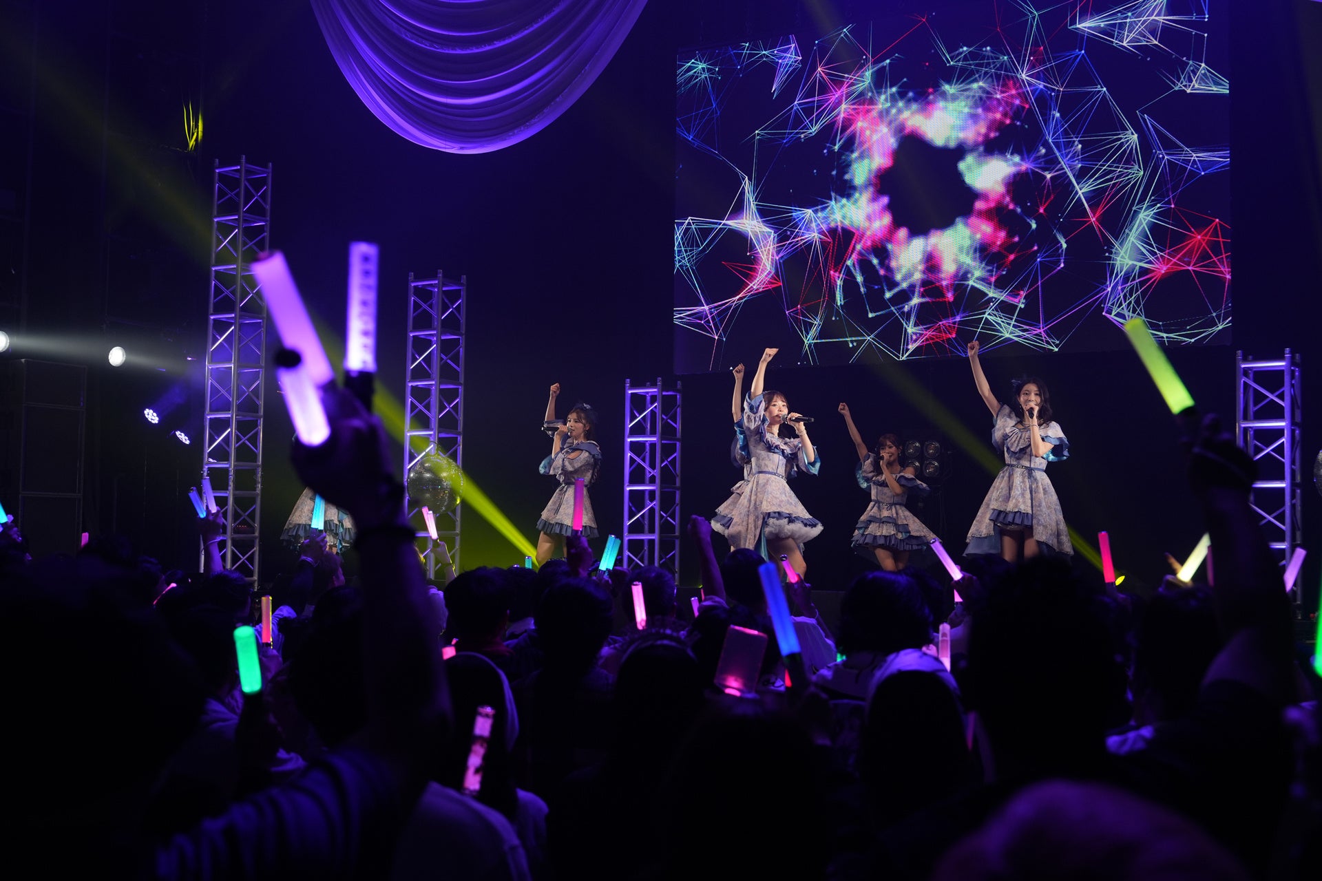 続いて、「Dark Idol」番組内でダンス講師・リュ・ソラ氏の過酷なレッスンが話題を呼んだ合宿審査オリジナル楽曲「Movin'On」をパフォーマンス。合宿では上手く踊れない自分に対して悔し涙を流した一条カオリだったが、今回のライブではそんな過去を感じさせないクールでキレのあるダンスを見せる。さらに「I FOR YOU」「Cosmetic Cosmos」と、カッコいいから可愛いまで網羅した新曲を2曲連続で披露し、彼女たちの持つポテンシャルの高さを証明した。