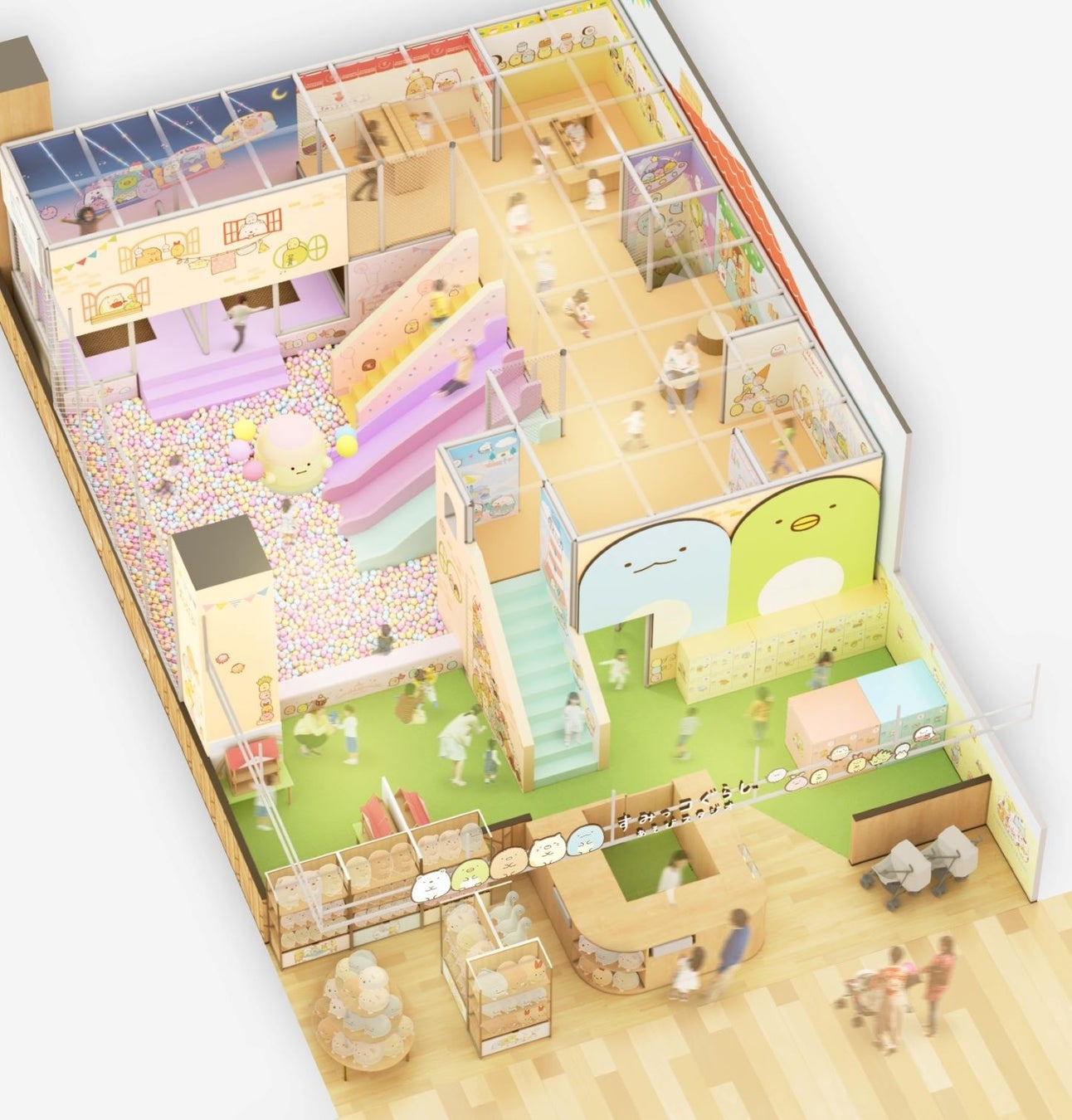 そのほかトランポリンコーナーや3列のすべり台など新たな遊具や「すみっコぐらし」のグッズが購入できる「グッズエリア」も併設し、「すみっコぐらし」の世界観を楽しめる工夫が随所にちりばめられています。
