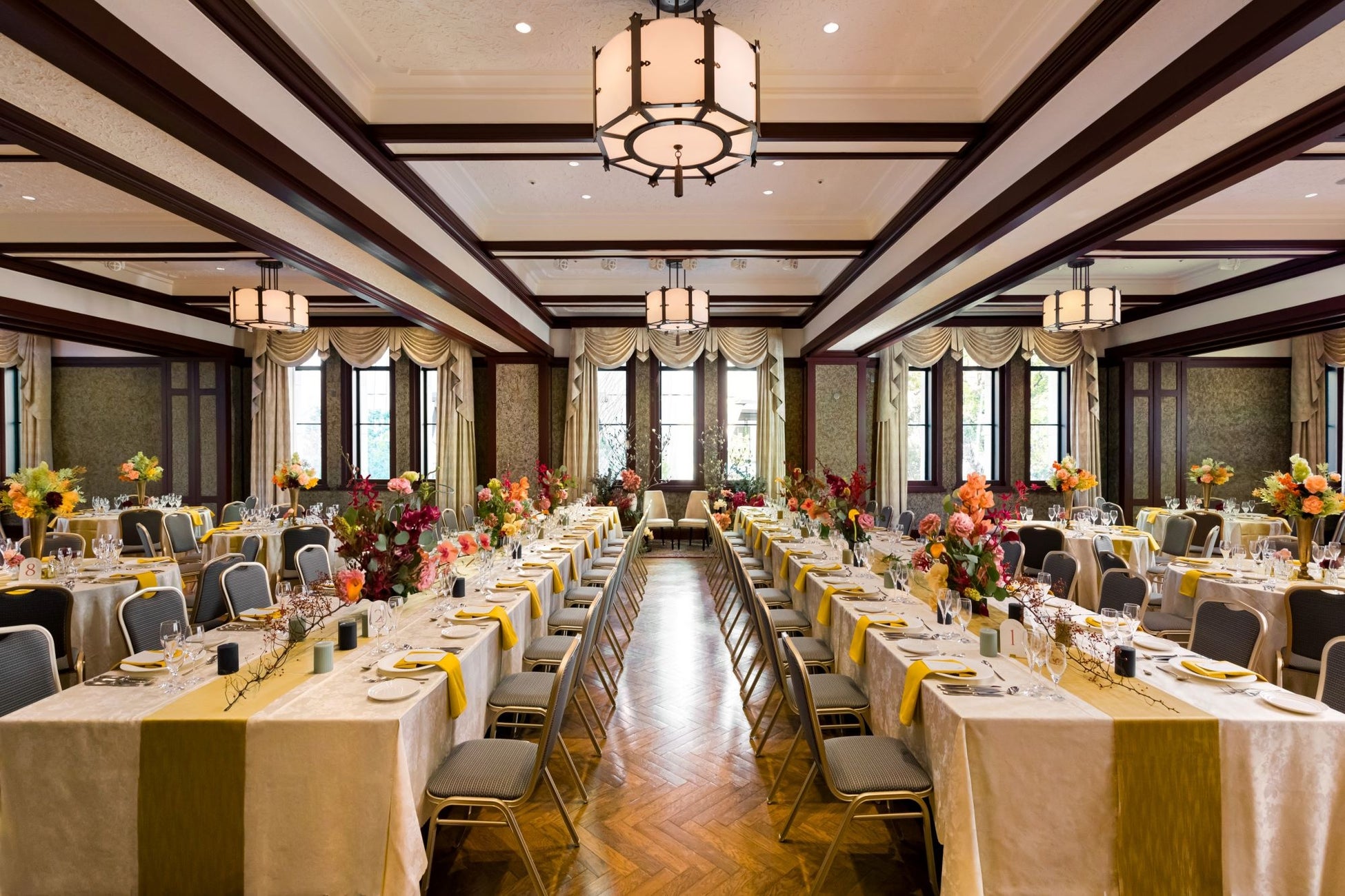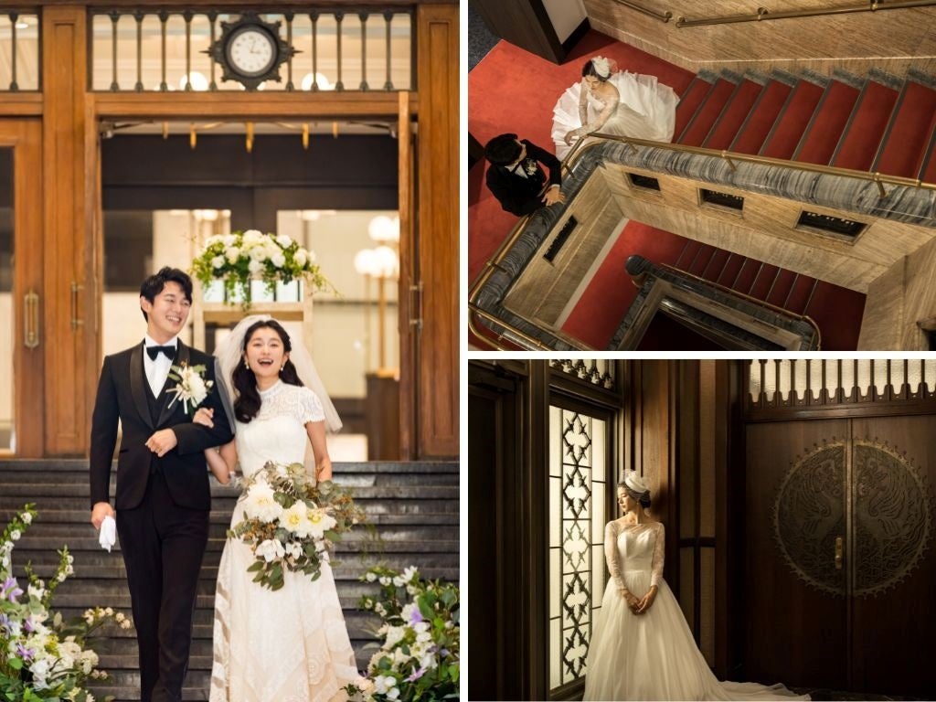 その一つである九段会館テラスは、登録有形文化財建造物である旧九段会館の貴重な技術・素材を活かして保存・復原を行った保存部分と、新築したオフィスビルの新旧が融合した建造物です。当社では、由緒あるその趣を残しながらも、長年紡がれてきたその歴史と現代のエッセンスが光る特別なウエディングプロデュースを実施してまいりました。