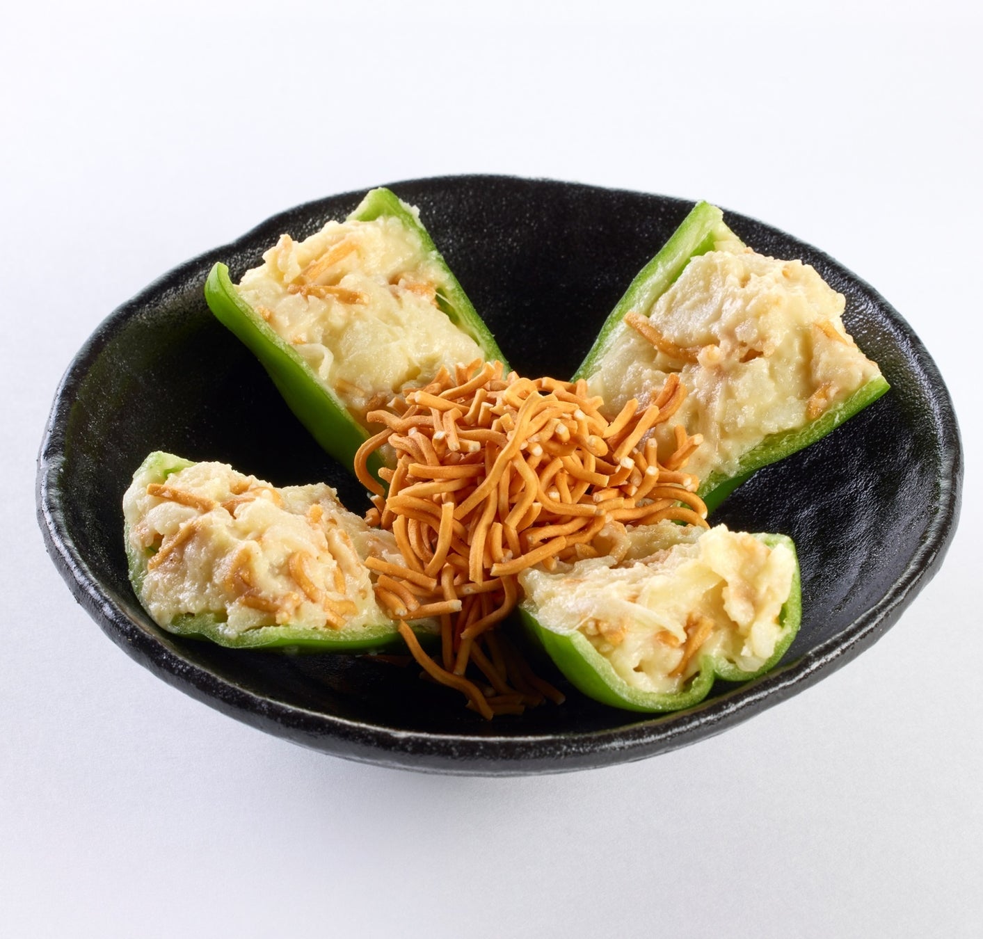 “追いベビースター”でパリピ―食感!フレッシュピーマンとベビースター入りポテサラ。パリパリのベビースターをポテトサラダが優しく包みます。
