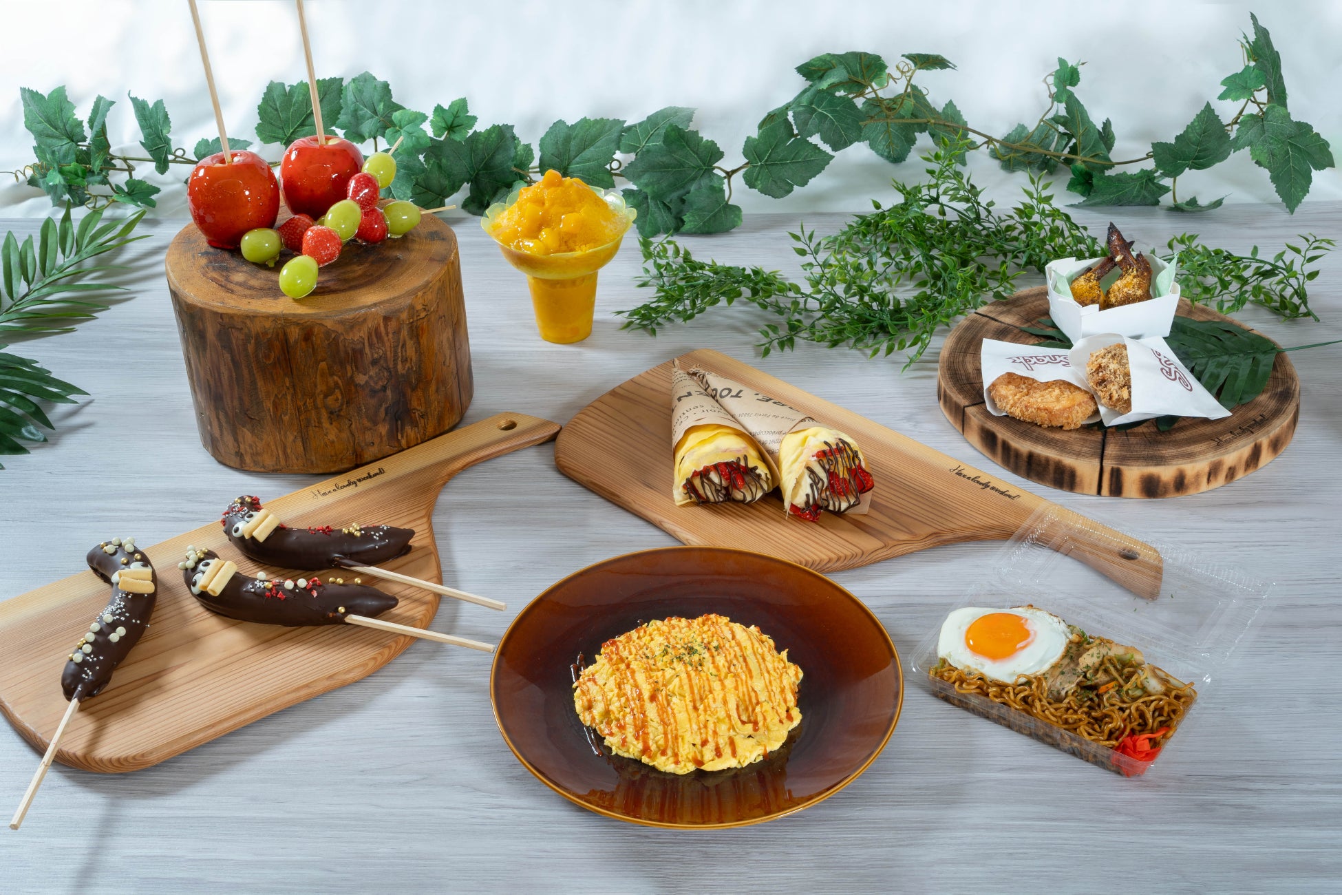 ホテルシェフが腕を振るう、フルーツあめやかき氷、チョコバナナ、ふわとろオムライスなど昭和レトロをテーマにした縁日フードが勢ぞろい。