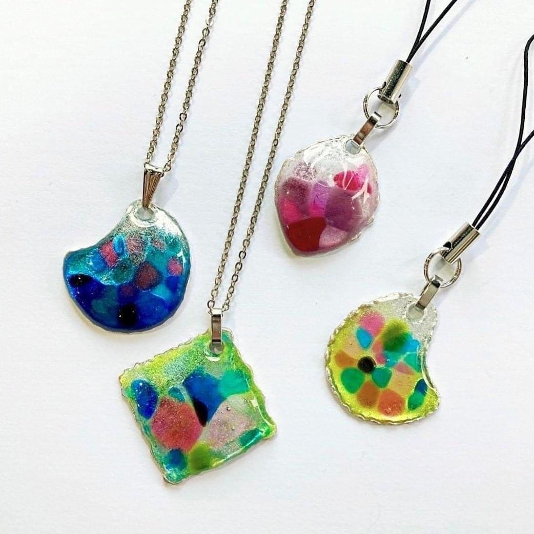 京都の伝統工芸のひとつ「京七宝」。純銀の板の上にお好みの色を焼き付け、オリジナルのペンダントまたはストラップをご制作いただけます。