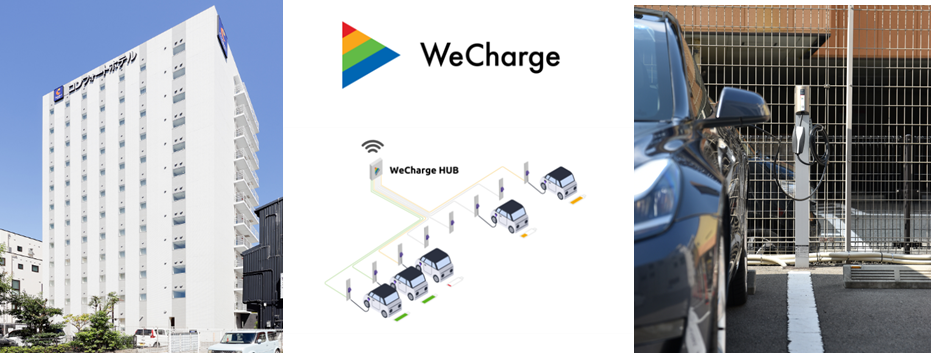 本投資法人及びグリーンズは、「コンフォートホテル和歌山」において、ユビ電株式会社(本社:東京都港区/代表取締役社長:山口典男、以下「ユビ電」)が展開するIoT 技術を活用したEV 充電サービス「We Charge」を導入しました。EV 充電サービスとは、EV 用充電コンセントをホテル駐車場へ設置し、宿泊利用者向けに充電設備を提供する有償サービスです。利用者は専用アプリを通じて充電操作が可能で、EV 用コンセント(3kW 出力)は、1 時間の充電で約20~25km 走行分の充電量が可能となります。本サービスは、宿泊利用者の利便性向上を図るとともに、EV 利用によるCO₂排出量の削減に貢献することを目的とした取組みです。