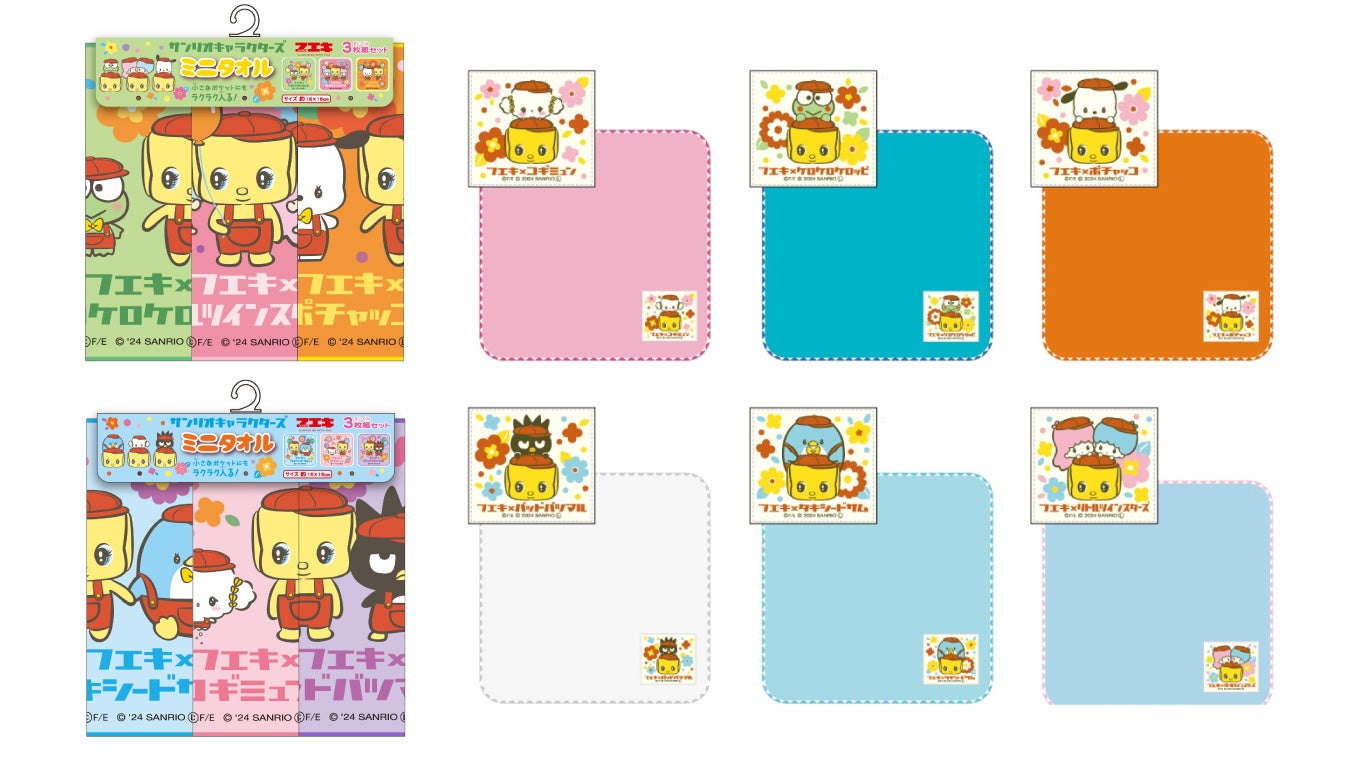 オリジナル商品の企画・制作・販売を軸に、企業・組織のトータルブランディングを手掛ける株式会社ヘソプロダクション(本社:大阪市福島区・代表取締役:稲本ミノル)は、不易糊工業株式会社の「フエキくん」と、株式会社サンリオの「サンリオキャラクターズ」がコラボレーションした新商品「ミニタオル3枚組セット(2種)」と「織ネームタオル(6種)」を、2024年11月下旬より販売いたします。