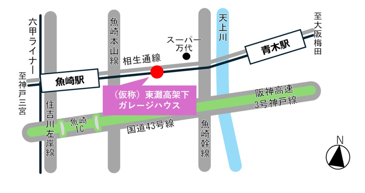 阪神高速3号神戸線「魚崎」出入口まで車で約3分
