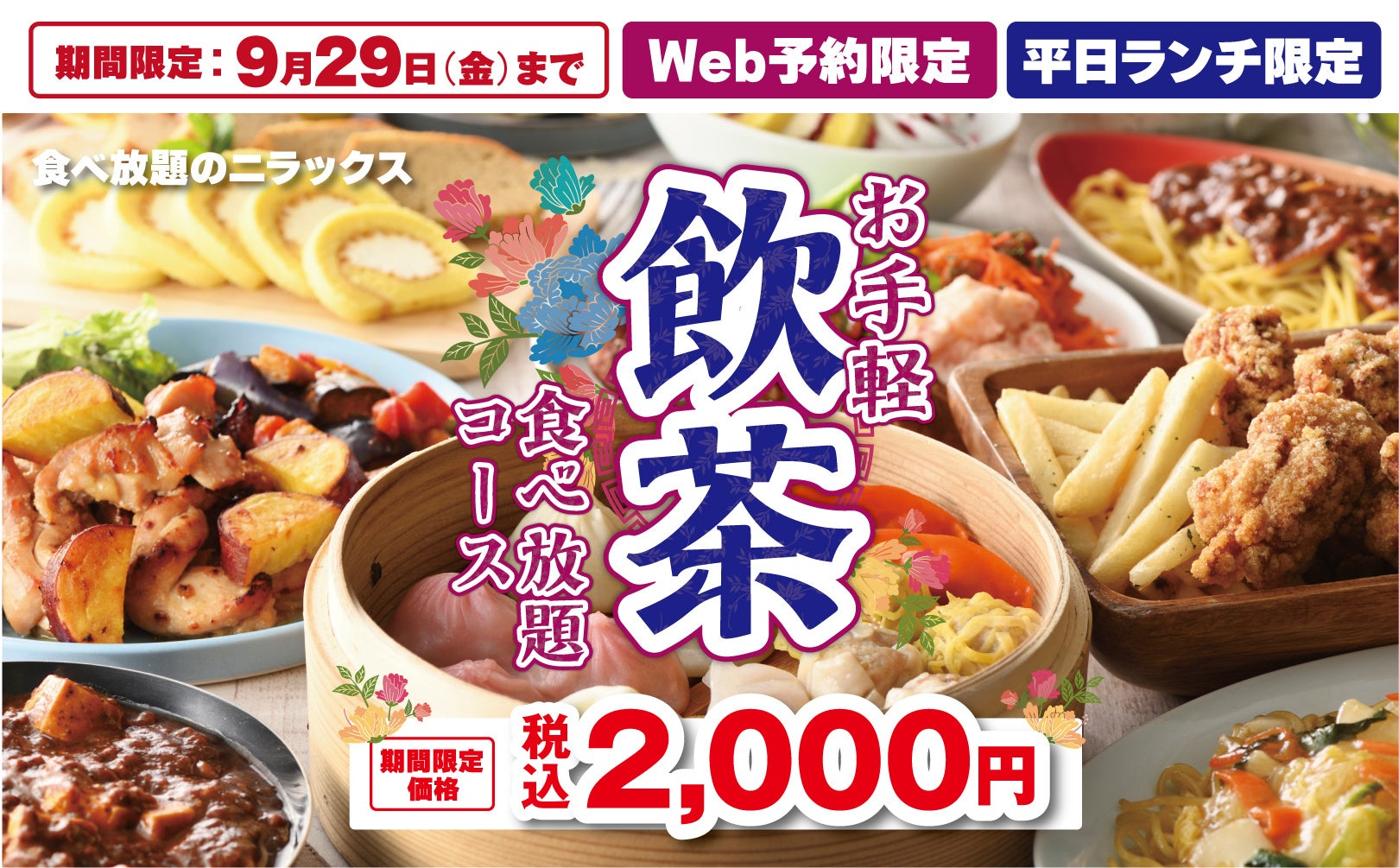 【充実‼時間無制限で飲茶食べ放題‼】9/29迄の平日ランチWEB予約限定!『グランブッフェ』2店舗にて、ブッフェ料理に『飲茶食べ放題』とドリンクバーが付いて2,000円!お得なコースが新登場!