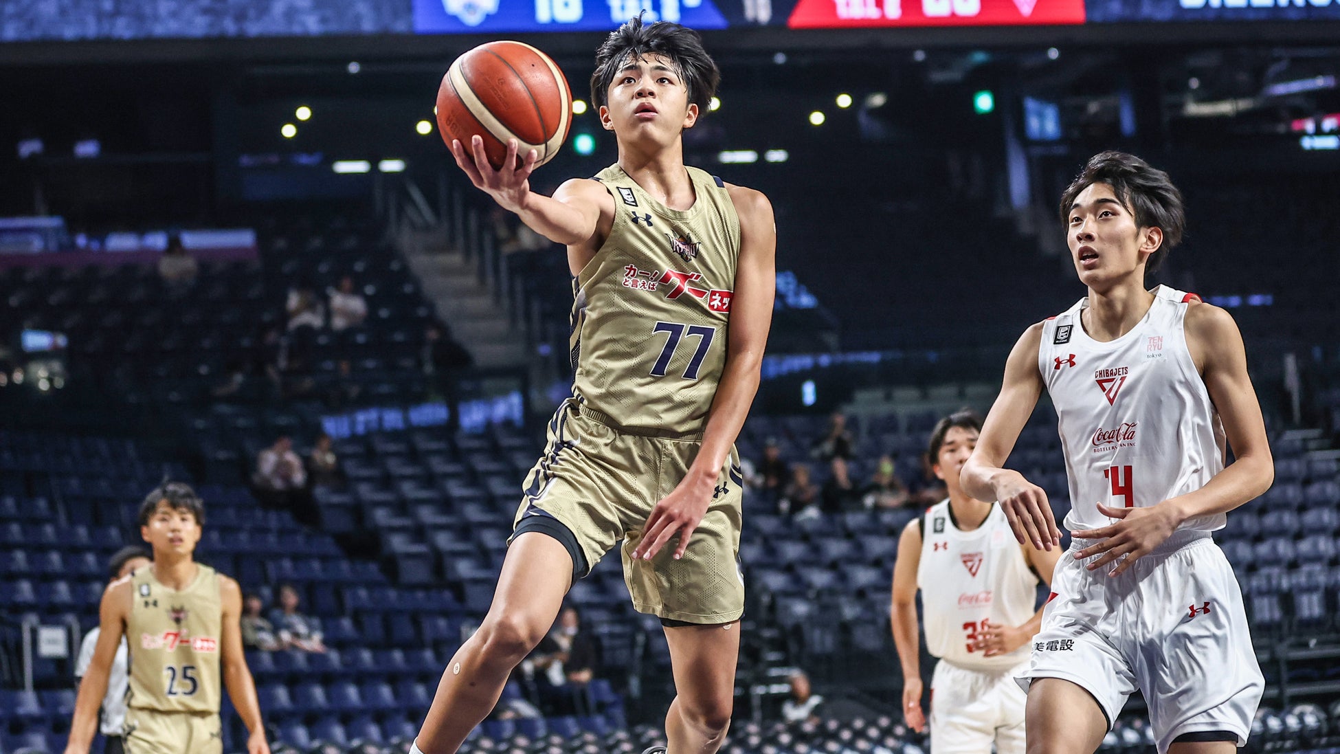 #77 佐取選手がペイントへアタックし2Pシュートをねじ込むと、#23 新垣選手の2Pシュート、#1 宜保隼弥選手の2Pシュートで得点を重ねます。両者譲らず一進一退の攻防が続くも、ゴール下で何度も粘りを見せオフェンスリバウンドから#77 佐取選手が2Pシュートを沈めます。さらに#77 佐取選手が3本連続で2Pシュートを決めるも、千葉J U18#00 関谷間選手に連続得点を許し39-48で後半へ。
