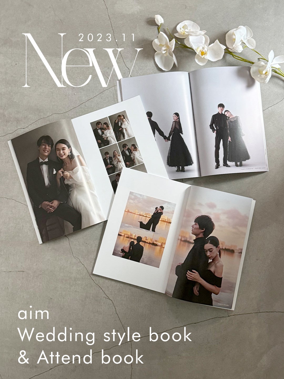 パンフレットは2冊セットのお届けとなっています。1冊はaimのウェディングスタイルとビジュアルがメインのスタイルブック。aimブライダルの最新ビジュアルを紹介しています。