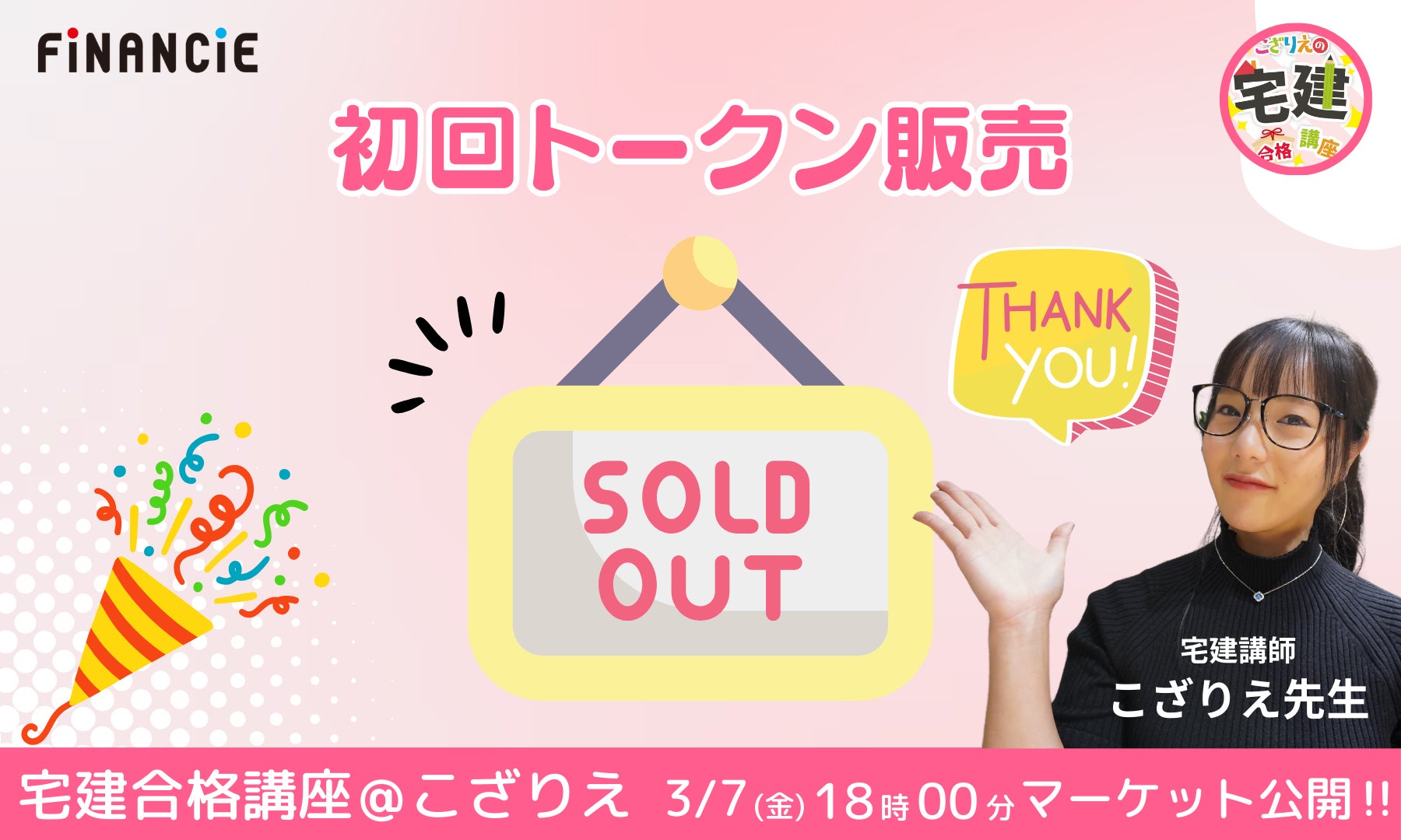 日本一の宅建講師を目指してFiNANCiEにてトークンを発行・販売した『宅建合格講座@こざりえ』が、トークン販売直後での即完を達成!