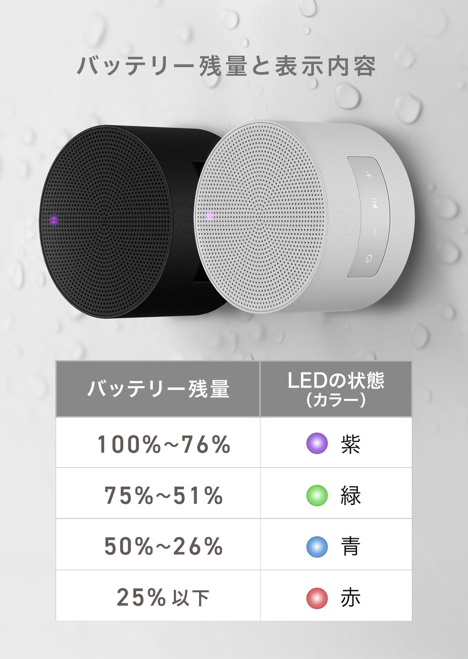 スピーカーのバッテリーは1800mAh内蔵。音量50%時、約8時間の連続再生が可能です。