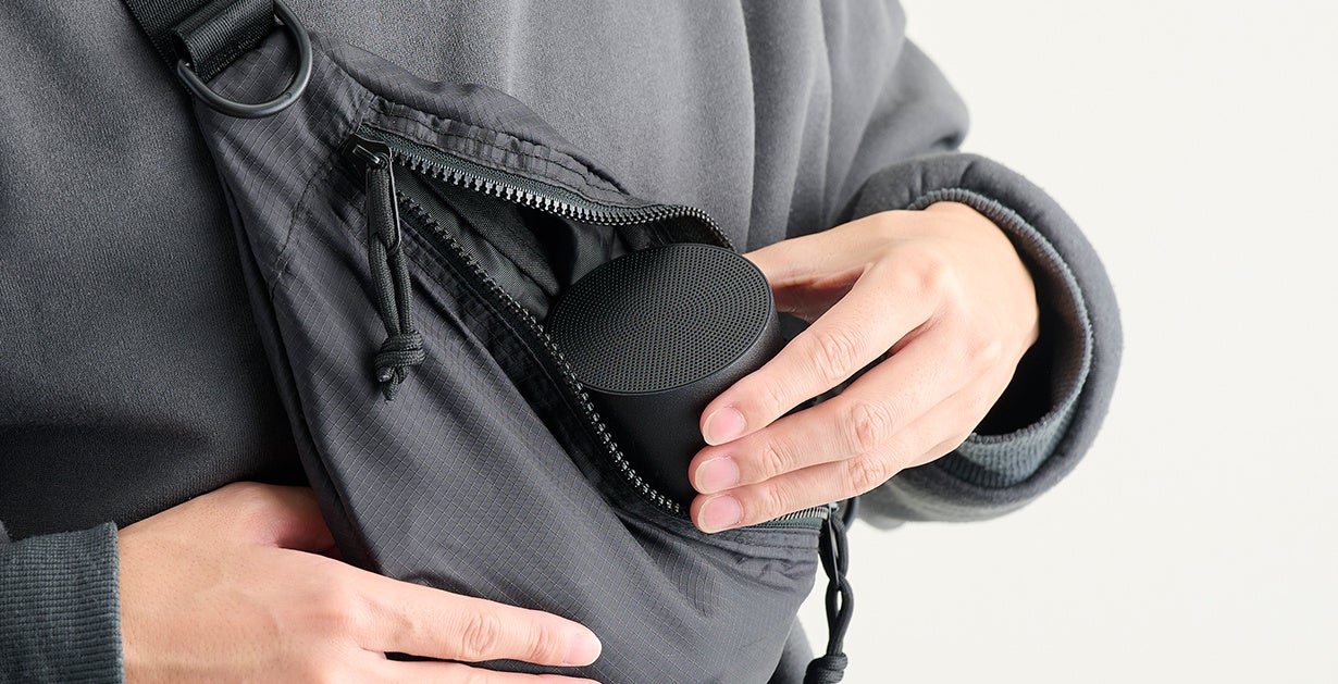 手のひらサイズのコンパクトさだからウエストポーチにも余裕でイン!出張や旅行先のホテルについたらお気に入りの曲をかけてリラックス空間に。室内だけでなく、野外の、ピクニック、バーベキュー、キャンプのテント内のBGMで特別な雰囲気を演出する事もできます。