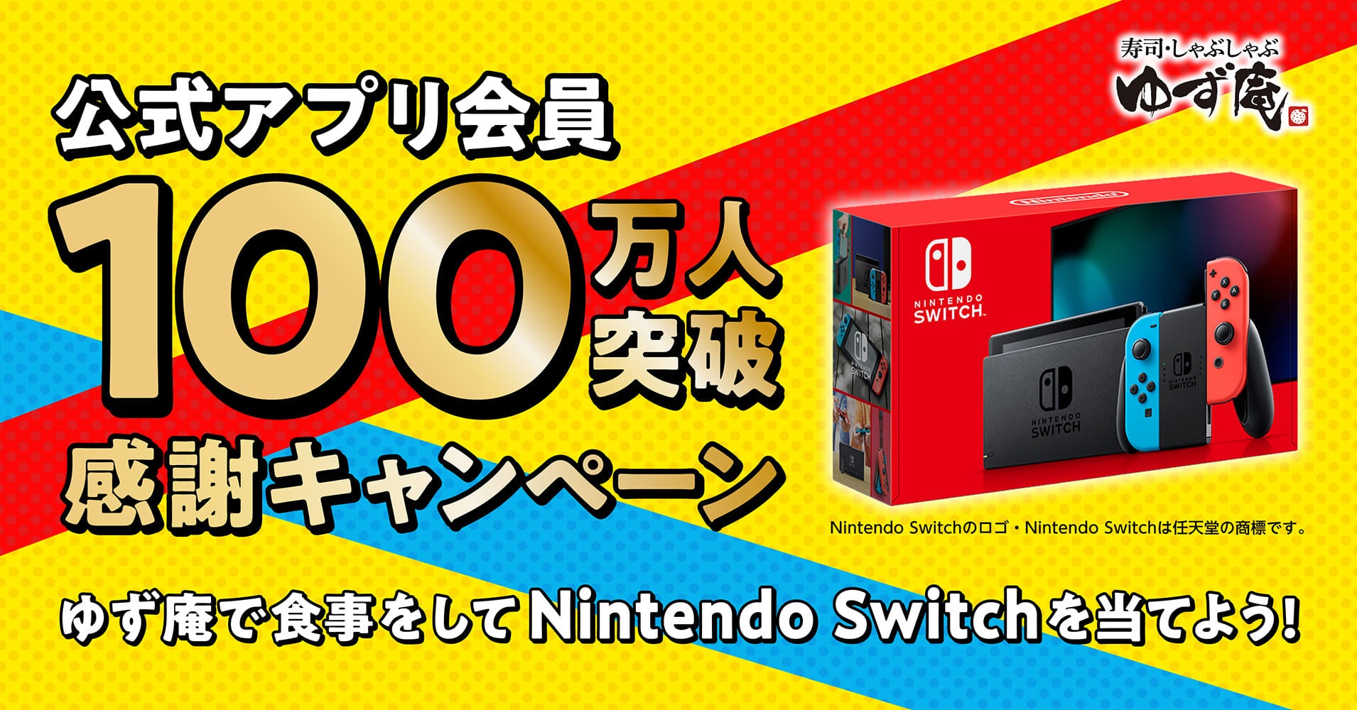- 『ゆず庵』アプリ会員数100万人突破記念!「Nintendo Switch®️」プレゼントキャンペーン