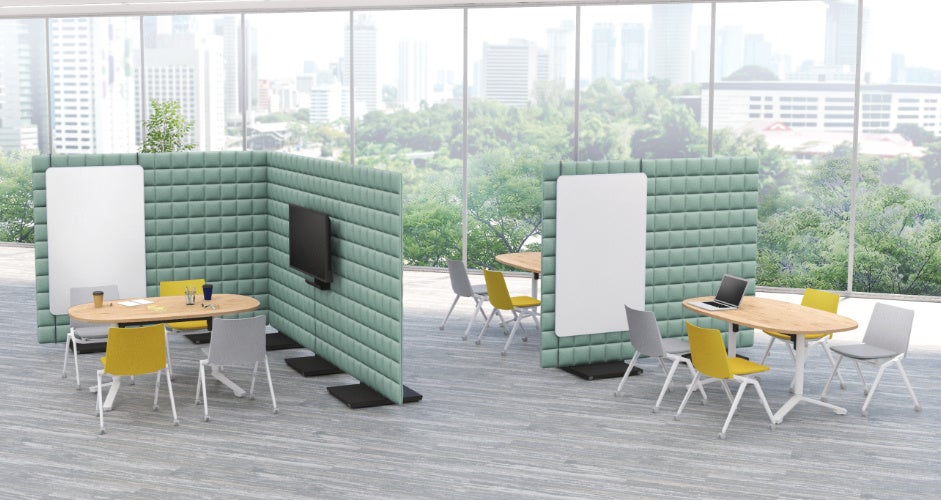 シーンに合わせて機能を選び柔軟にレイアウトすることで、音環境に配慮しながら、ワーカー同士のコミュニケーション促進に貢献します。
