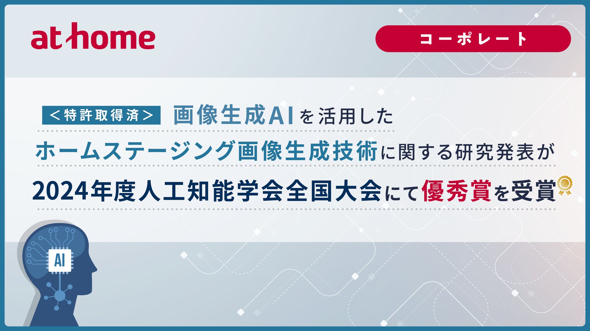 不動産情報サービスのアットホーム株式会社(本社:東京都大田区 代表取締役社長:鶴森 康史 以下、アットホーム)のグループ会社である、データ解析事業のアットホームラボ株式会社(所在地:東京都千代田区 代表取締役社長:大武 義隆 以下、アットホームラボ)は、2024年度人工知能学会全国大会において、アドバンストテクノロジー部 服部 翔による研究発表「Stable Diffusionによる部屋間取りを保持したホームステージング※画像生成」に関して、優秀賞を受賞いたしました。