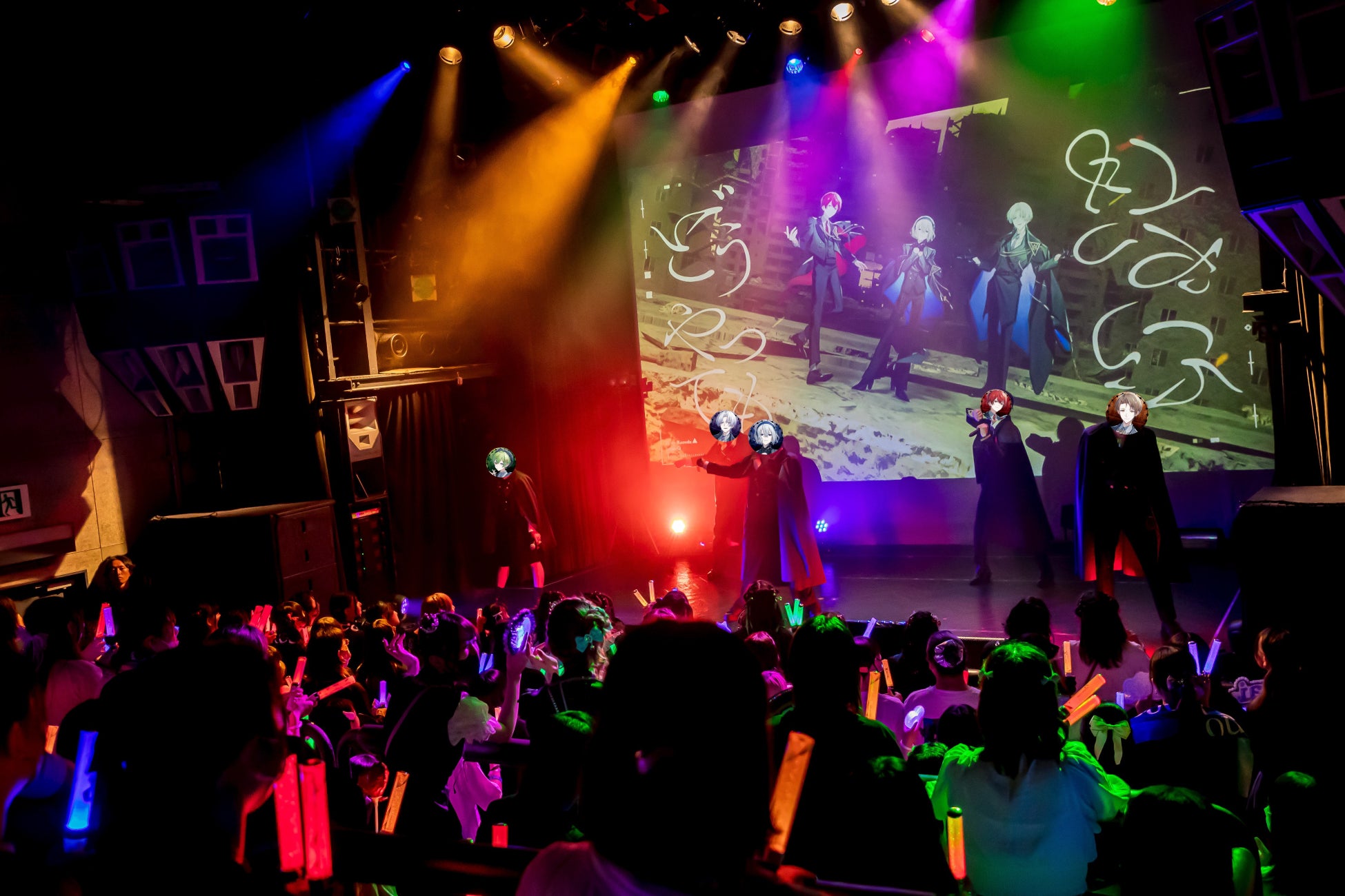 昼の部が開演すると、ステージではオープニング映像が映され、いお(オレンジ色担当)、はねはね(緑色担当)、Reru(赤色担当)、あがわ(紫色担当)、xai(青色担当)の順にメンバーが登場。各メンバーの姿が見えるたびに客席からは歓声が沸き起こりました。