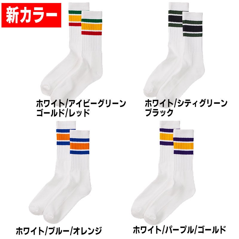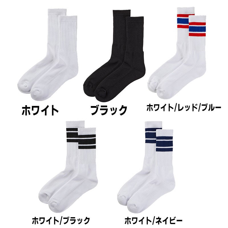 ソリッドカラーだけでなくラインソックスの展開もあり、ハイカットのスニーカーなどからチラ見えするラインがコーデのアクセントに。