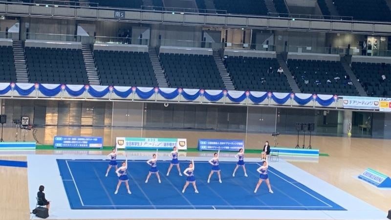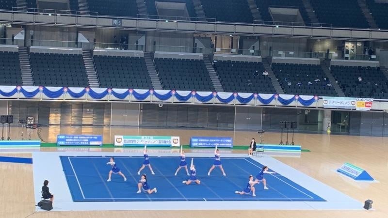 同部は、アームモーションやジャンプ、タンブリング、ダンスなどのチアダンスの演技の要素を音楽に合わせ、自由に創作する「チアリーディング スピリッツ演技競技」という種目に8人で出場。さまざまなジャンプやダンス、タンブリングを組み合わせた力強い演技を披露した後、後半はディズニーの名曲『Let It Go』に乗せて息の合ったダンスで魅了しました。同種目は、当初参加予定の団体の参加取りやめが相次ぎ、本学と青山学院大学(東京都)の2団体で優勝を争い、本学の得点127.0点を上回る136.5点を獲得した青山学院大学が優勝となりました。