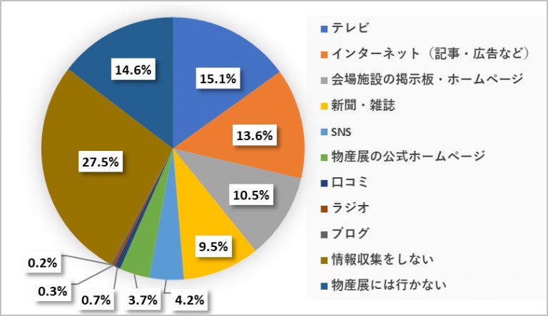 物産展を利用する際の情報収集は、「テレビ」と回答した方が15.1%で最も多いことがわかりました。次いで、「インターネット」と回答した方が13.6%、「会場施設の掲示板・ホームページ」と回答した方が10.5%という結果になりました。回答結果から、テレビやインターネットをはじめとした多様な回答がありました。