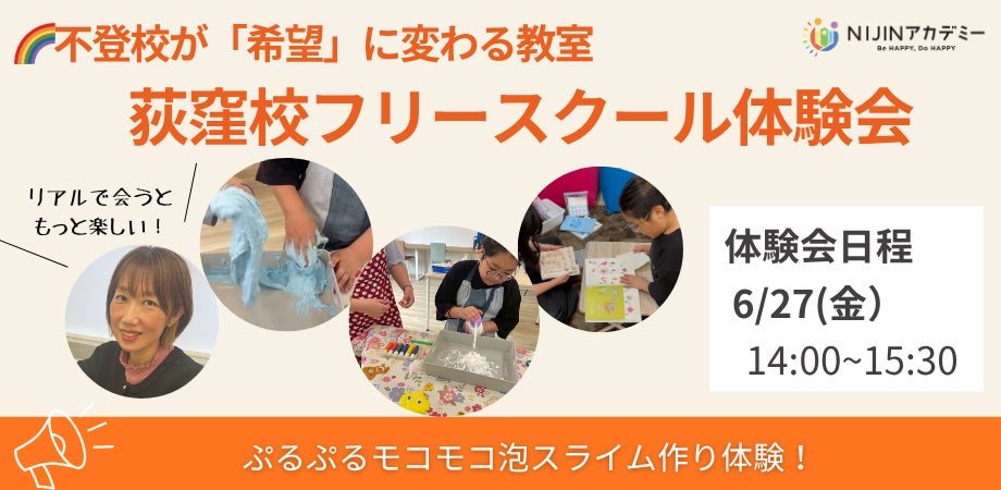 【東京都杉並区・荻窪】6月27日(金)不登校オルタナティブスクール「NIJINアカデミー荻窪校」フリースクール体験会開催決定!