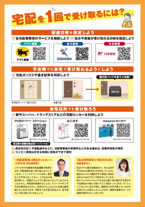 【埼玉県】12月を「再配達削減推進月間」とし「宅配を1回で受け取ろうキャンペーン」を実施!